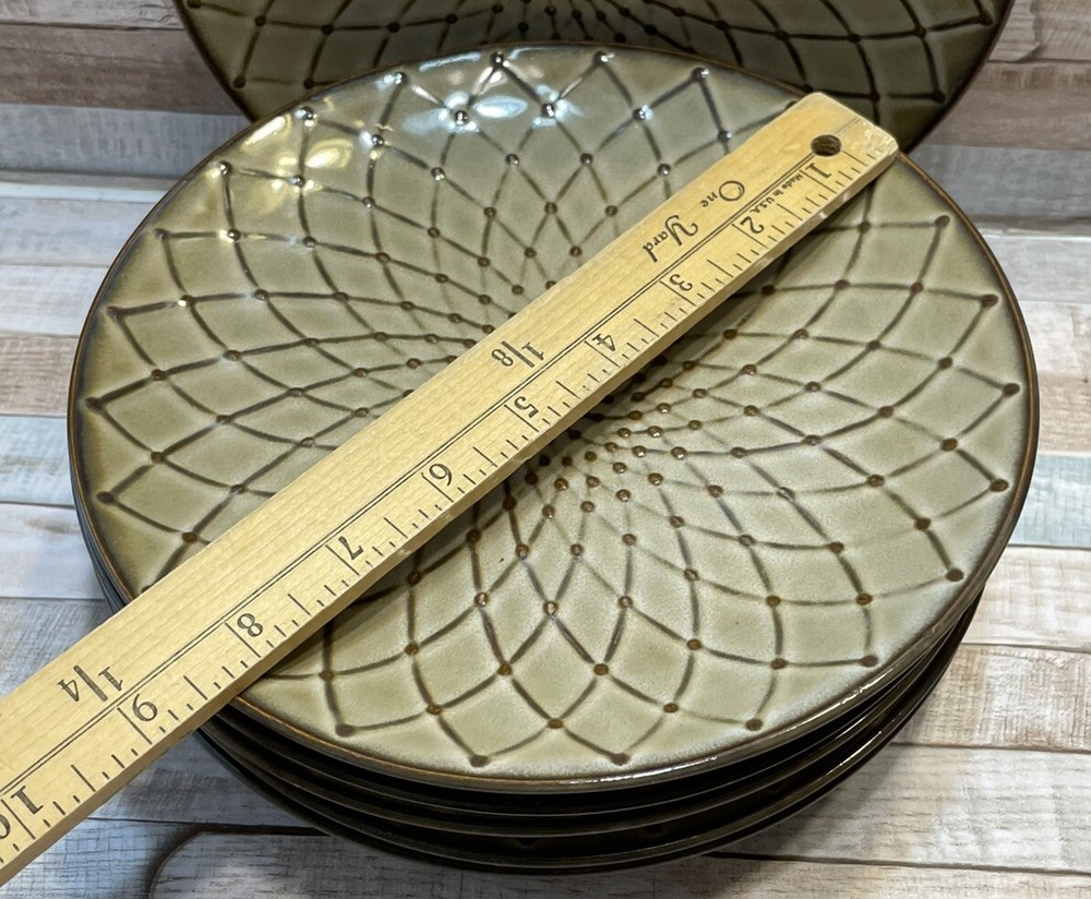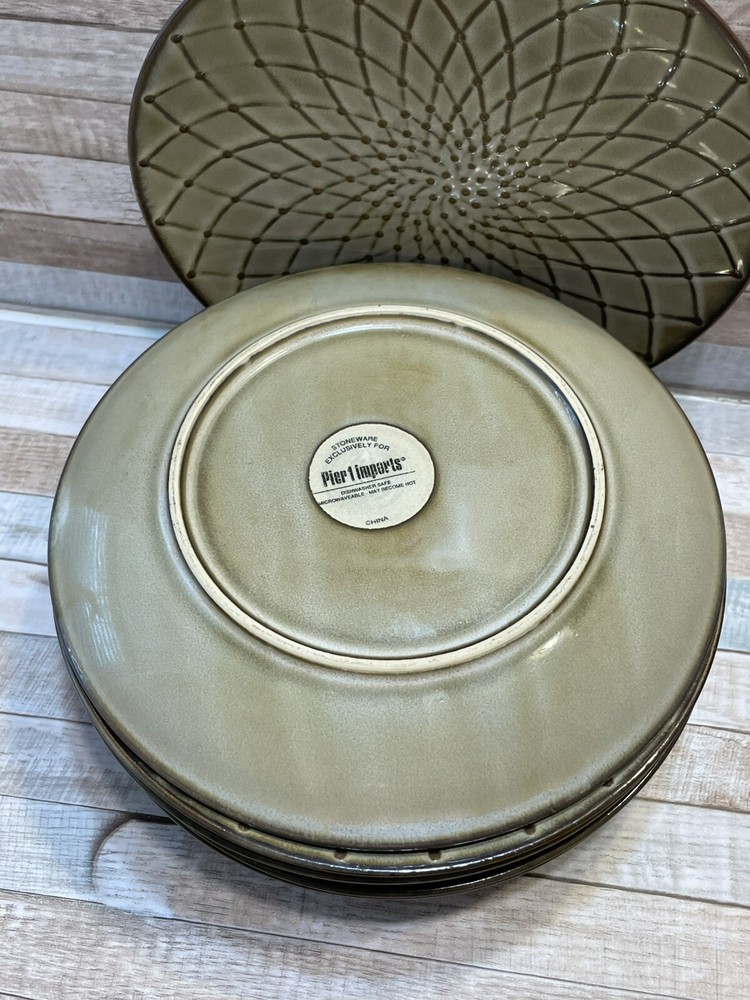 *MAKE AN OFFER! *Buy with confidence, Long-time US seller Set of 7 PIER 1 salad/luncheon plates Reactive Tan Brown 8.5” Geometric pattern No blemishes, cracks, or chips All details in photos Excellent condition! *See photos for additional information *FAST SHIPPING! (Same day/Next Day Ship) *Tracking and Insurance included *Almost 20 years small business, See Feedback *Excellent Customer Service and satisfaction!