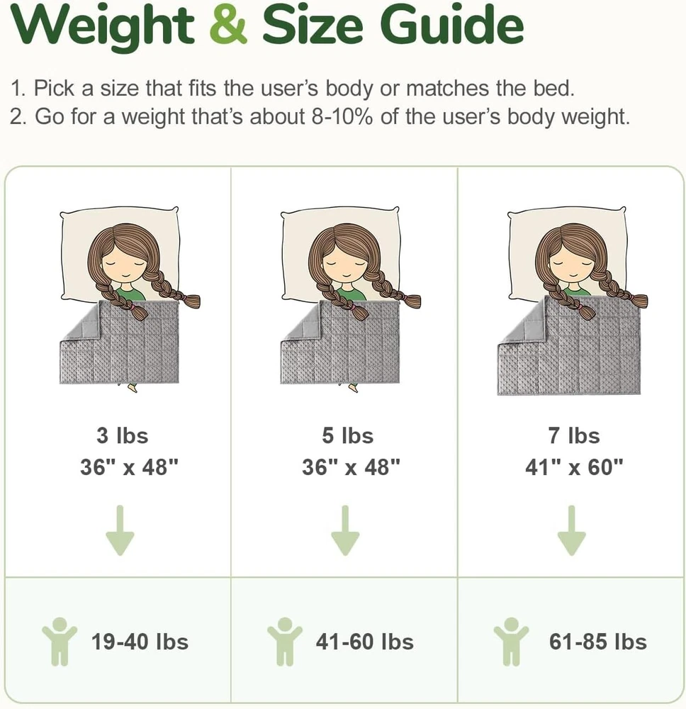 7 lb Weighted Blanket with Removable Cover - Cozy Minky & Microfiber, 41"x60" ‹ › ‹ › ‹ › ‹ › ‹ › ‹ › ‹ › ‹ › ‹ › 7 lb Weighted Blanket with Removable Cover -Cozy Minky & Microfiber -Size: 41"x60" Features: Enhance Sleep Quality: Bid farewell to sleepless nights with our weighted blanket, designed to curb tossing and turning and creating a secure sleep environment. All Season Comfort: Reversible design features breathable microfiber on one side and plush Minky on the other for warmth in winter and coolness in summer. Perfect Fit: Available in multiple weights (2 lbs, 3 lbs, 5 lbs, and 7 lbs) suitable for differing age groups and body weights. Our larger 7 lb blanket measures 41"x60" for those needing extra coverage. Ideal Gift: Made of ultra-soft materials, this blanket is perfect for gifting, spreading warmth, comfort, and joy. Easy Maintenance: Conveniently machine washable with a multi-layer structure to prevent leakage of inner weight beads. Benefits: Creates a soothing atmosphere for improved sleep quality. Available in various weights to suit individual preferences. All-season versatility offers comfort -round. Machine washable for hassle-free maintenance. A thoughtful gift for friends and loved ones that embodies warmth. Why Choose Our Weighted Blanket? Transform your sleep experience with our 7 lb Weighted Blanket, carefully designed to mimic the soothing embrace of a mother's hug. The reversible cover provides unparalleled comfort while its blended materials ensure durability, allowing you to enjoy cozy nights all long. Ideal for children and adults alike, this blanket makes the perfect gift, radiating warmth and care. Don’t let another restless night pass - secure your restful haven with our Weighted Blanket today! Shipping Free & Fast Shipping - We offer free shipping to most of the USA with a normal delivery time of 3-7 days. However, due to the current situation, additional delivery time (up to 3 weeks) may be required for some items. Alternative Carriers - We may use alternative carriers (e.g. USPS, FedEx, UPS, etc.) to ensure your package arrives safely and on time. Due to the use of multiple carriers, we are unable to provide a tracking number automatically. Handling Time - Orders are processed and shipped within 1-2 business days of receiving cleared payment. Shipping Restrictions - Shipping to Alaska, Hawaii, Puerto Rico, Guam, and other US territories may incur shipping charges or delivery restrictions. Please contact us before ordering, or your order can be refunded/cancelled. State Restrictions - There may be restrictions based on your state of purchase. For example, certain items may not be shipped to California due to state regulations. Contact for Tracking Updates - If you require tracking updates or have any concerns about the delivery of your order, please feel free to contact us, and we will be happy to assist you. Return 30-Day Hassle-Free Returns - We want you to be completely satisfied with your purchase. If you are not, you can return the item within 30 days of receiving it for a full refund or exchange. Easy Return Process - To start a return, simply contact us and we will provide you with a prepaid return shipping label and detailed instructions. Restocking Fee - There are no restocking fees for returns. However, the buyer is responsible for return shipping costs if the return is not due to a seller's error. Refund Processing Time - Refunds will be processed within 5 business days of receiving the returned item in its condition. Payment We accept all major credit cards, PayPal, and Apple Pay for your convenience. Your payment information is secure and encrypted to ensure a safe and seamless transaction. Please complete your payment within 3 days of purchase to avoid any delays in shipping. Feedback Your feedback is extremely important to us. We strive to provide the best products and customer service possible. If you are satisfied with your purchase, please take a moment to leave us a positive review. If you have any concerns or issues with your order, please contact us before leaving negative feedback. We are committed to resolving any problems and ensuring your satisfaction. Contact Us If you have any questions or concerns, please feel free to out to our customer support team. You can contact us through the eBay messaging system. We are available Monday to Friday, 9:00 am to 5:00 pm EST, and we will do our best to respond to your inquiry within 24 hours. Buy it now and enjoy a pleasant shopping experience! Item Width: Weighted Blanket Item Length: Weighted Blanket Unit Quantity: 7 Material: Cotton Blend,Microfiber,Polyester Blend,Minky Features: Breathable,Machine Washable,Reversible,Weighted,Soft Theme: Plain Care Instructions: Machine Wash Department: Kids,Adults Room: Bedroom Size: 41 x 60 inches Type: Weighted Blanket Color: Grey Pattern: Solid Style: Modern Shape: Rectangular Insulation: All Seasons Closure Type: No Closure GSM (Grams per Square Meter): Below 150 Thread Count: 200 or Less Unit Type: lb