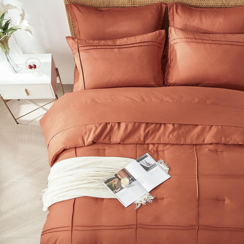 7-Piece King Comforter Set in Terracotta with Soft Microfiber Sheets & Shams < class="slides"> ‹ › ‹ › ‹ › ‹ › ‹ › ‹ › ‹ › ‹ › ‹ › 7-Piece King Comforter Set in Terracotta Transform your bedroom into a serene retreat with our exquisite 7-Piece King Comforter Set, crafted from 100% Cozy Soft Microfiber. This bedding set not only effortlessly enhances your decor but also promises a restful night’s sleep, enveloping you in luxurious softness. Features: <> Quality Fabric: Made from 100% soft microfiber, every piece delivers a gentle touch against your skin, ensuring comfort and breathability year-round. Beautiful Design: The striped pleats coupled with solid terracotta color offer a simplistic yet stylish appearance that enhances any bedroom decor. Complete King Size Set: Includes 1 Comforter (104"x90"), 1 Flat Sheet (108"x102"), 1 Fitted Sheet (78"x80"+18"), 2 Pillowcases (20"x40"), and 2 Pillow Shams (20"x36"). Easy Maintenance: Machine washable on a gentle cycle for effortless care; tumble dry on low heat. Customer Service: Exceptional support with replies within 24 hours for any inquiries. Benefits: <> Ultra-soft and lightweight, ensuring maximum comfort all night long. Year-round adaptability for a cozy sleeping environment, regardless of the season. The exquisite design seamlessly integrates with a variety of decor styles, making it a perfect gift for any occasion. Comprehensive set simplifies the process of creating a beautifully styled bed. Why Choose Our Comforter Set? Delight in the elegance and comfort of our 7-Piece King Comforter Set, designed not just for aesthetic appeal, but for uncompromised luxury. Perfect for personal use or as a thoughtful gift, this set ticks all the boxes for cozy living. The terracotta color adds warmth to your space, while the unique stitching ensures that the elegant filling stays evenly distributed and plush. Elevate your bedroom experience — add this luxurious comforter set to your cart today and indulge in the cozy sanctuary you deserve. Shipping <> <> Free & Fast Shipping - We offer free shipping to most of the USA with a normal delivery time of 3-7 days. However, due to the current situation, additional delivery time (up to 3 weeks) may be required for some items. Alternative Carriers - We may use alternative carriers (e.g. USPS, FedEx, UPS, etc.) to ensure your package arrives safely and on time. Due to the use of multiple carriers, we are unable to provide a tracking number automatically. Handling Time - Orders are processed and shipped within 1-2 business days of receiving cleared payment. Shipping Restrictions - Shipping to Alaska, Hawaii, Puerto Rico, Guam, and other US territories may incur shipping charges or delivery restrictions. Please contact us before ordering, or your order can be refunded/cancelled. State Restrictions - There may be restrictions based on your state of purchase. For example, certain items may not be shipped to California due to state regulations. Contact for Tracking Updates - If you require tracking updates or have any concerns about the delivery of your order, please feel free to contact us, and we will be happy to assist you. Return <> <> 30-Day Hassle-Free Returns - We want you to be completely satisfied with your purchase. If you are not, you can return the item within 30 days of receiving it for a full refund or exchange. Easy Return Process - To start a return, simply contact us and we will provide you with a prepaid return shipping label and detailed instructions. Restocking Fee - There are no restocking fees for returns. However, the buyer is responsible for return shipping costs if the return is not due to a seller's error. Refund Processing Time - Refunds will be processed within 5 business days of receiving the returned item in its condition. Payment We accept all major credit cards, PayPal, and Apple Pay for your convenience. Your payment information is secure and encrypted to ensure a safe and seamless transaction. Please complete your payment within 3 days of purchase to avoid any delays in shipping. Feedback Your feedback is extremely important to us. We strive to provide the best products and customer service possible. If you are satisfied with your purchase, please take a moment to leave us a positive review. If you have any concerns or issues with your order, please contact us before leaving negative feedback. We are committed to resolving any problems and ensuring your satisfaction. Contact Us If you have any questions or concerns, please feel free to out to our customer support team. You can contact us through the eBay messaging system. We are available Monday to Friday, 9:00 am to 5:00 pm EST, and we will do our best to respond to your inquiry within 24 hours. Buy it now and enjoy a pleasant shopping experience! Model: King Size Comforter Set Set Includes: Comforter,Fitted Sheet,Flat Sheet,Pillowcase,Pillow Sham Material: Microfiber,Polyester Features: Breathable,Lightweight Theme: Pinch Plaid Care Instructions: Do Not Bleach,Machine Wash Department: Unisex Baby & Toddler,Kids,Teens,Adults Room: Bedroom Size: King Type: Comforter Set Color: Terracotta Fill Material: Polyester Pattern: Solid Number of Items in Set: 7 Style: Shabby Insulation: All Seasons Season: All Closure Type: No Closure Thread Count: 200 or Less GSM (Grams per Square Meter): Below 150