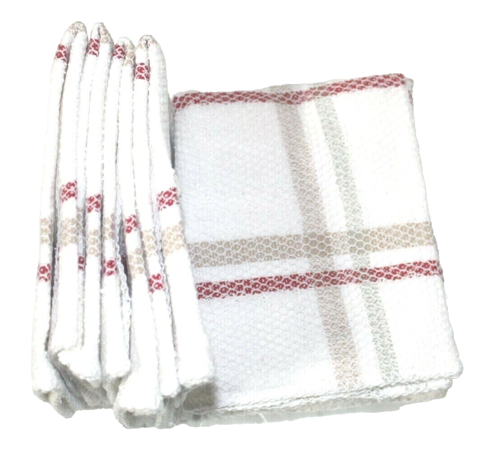 2 Packs of 4 Mainstay Dish Cloth Scrubber Features a polyester net scrubber on one side of the cotton cloth. Each measures 12" X 12" and has Gray, Red and Tan Stripes. New with original tags. Please take a look at our other bargains at The Main Place