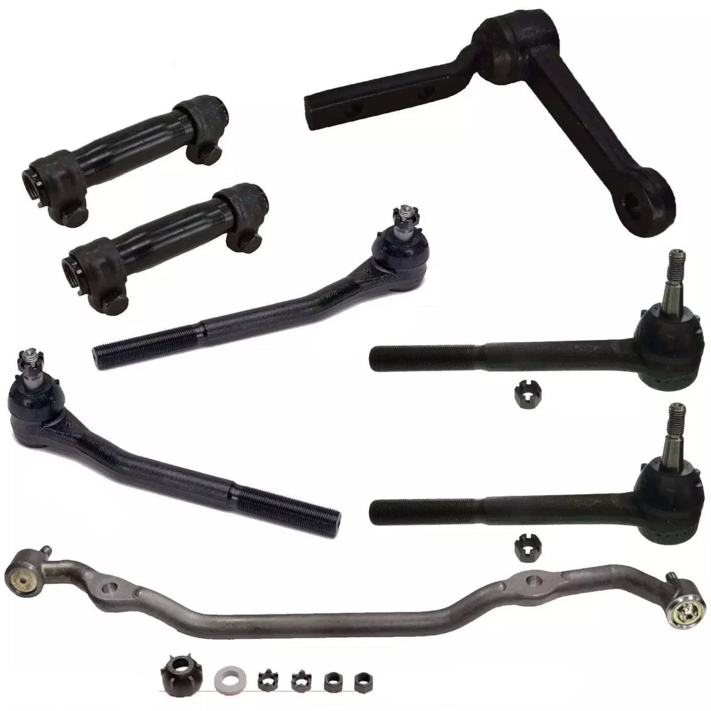 We are here to help! We love our cars as much as you do and we understand the importance of having a reliable car to get to work, home, and conquer our day to day goals. We source and work directly with USA brands to provide the highest quality parts at the best prices. Our Packing Quality is Guaranteed and shipping is Timely! You Are Buying: 2 - Inner Tie rod ends 2 - Outer tie rod ends 2 - Adjusting sleeves 1 - Center link 1 - Idler arm “Your kit might ship in multiple packages. If you receive your box and you are missing parts, msg us for additional tracking info. “ This kit comes with a 5 Year Warranty ***NOTE: Please make sure your vehicle is listed in the compatibility chart above. If you are unsure please send us a message. FYI: We sell high quality aftermarket replacement parts All of our products comply with the DOT regulations and quality standards for the United States All purchases are shipped within 24 Business Hours. . While some parts have grease fittings, other parts are factory sealed, this does not affect the fit or the quality of the parts. Our Kits are pre-assembled in the USA We proudly stand behind all the products we sell and any claims are handled directly by us giving you peace of mind and a great purchase experience. Report a problem or Return: Before opening a return request please message us right away, we are here for you! We strive to offer quality customer service and want you to have an excellent experience shopping with us. Questions, Concerns, comments?! Please reach out to us.