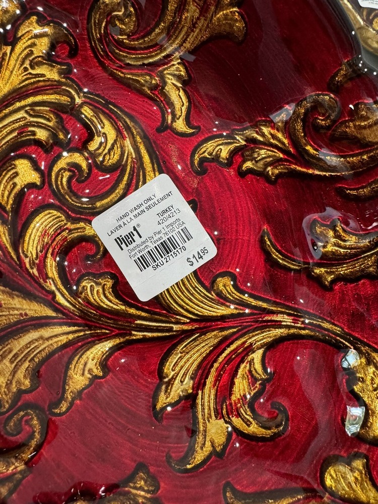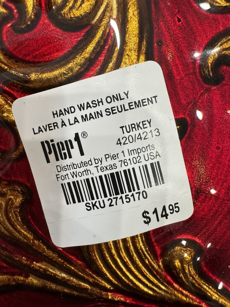 These festive red and gold bowls from Pier 1 are absolutely stunning—perfect for holiday meals or everyday use! The vibrant design elevates any table setting, whether you're serving soup, salad, or cereal. Plus, the quality is sturdy while still looking elegant. A rare find that adds a pop of cheer to your kitchen!