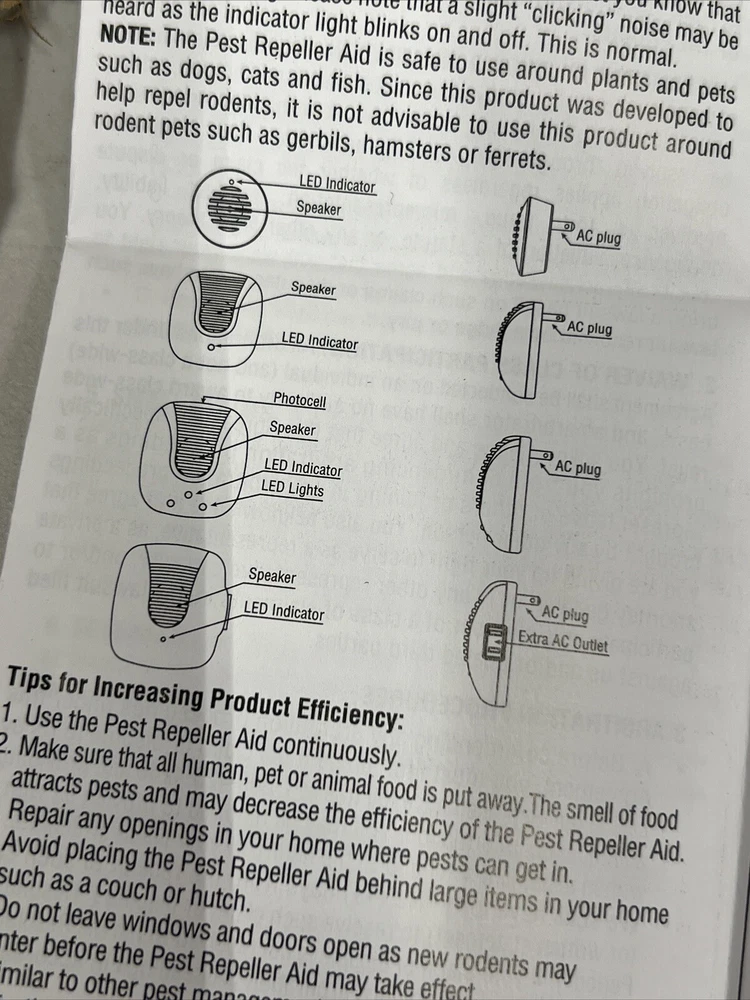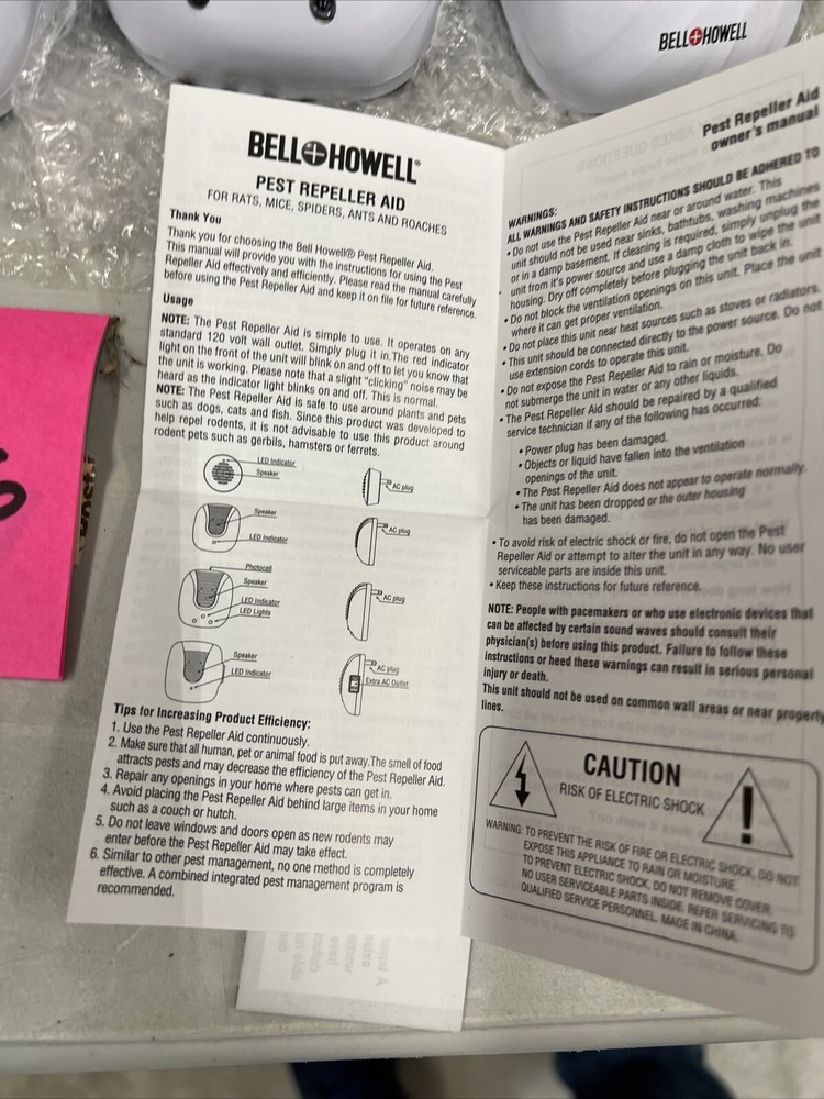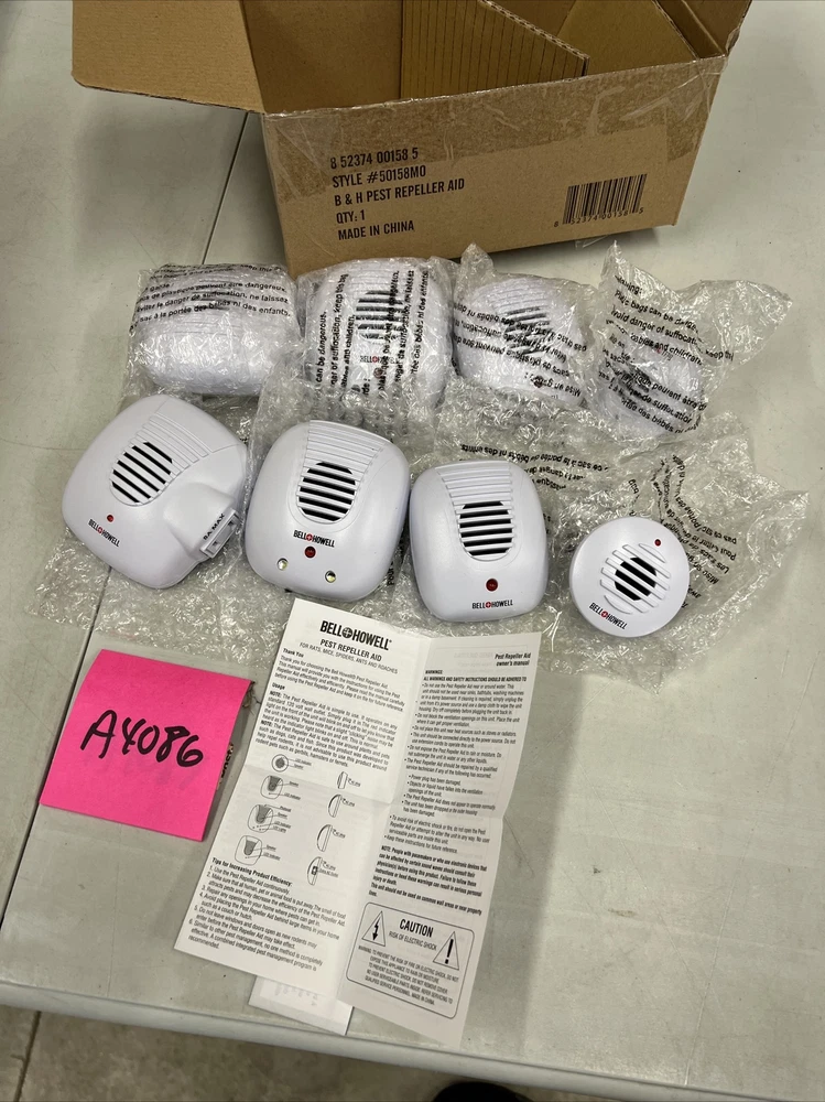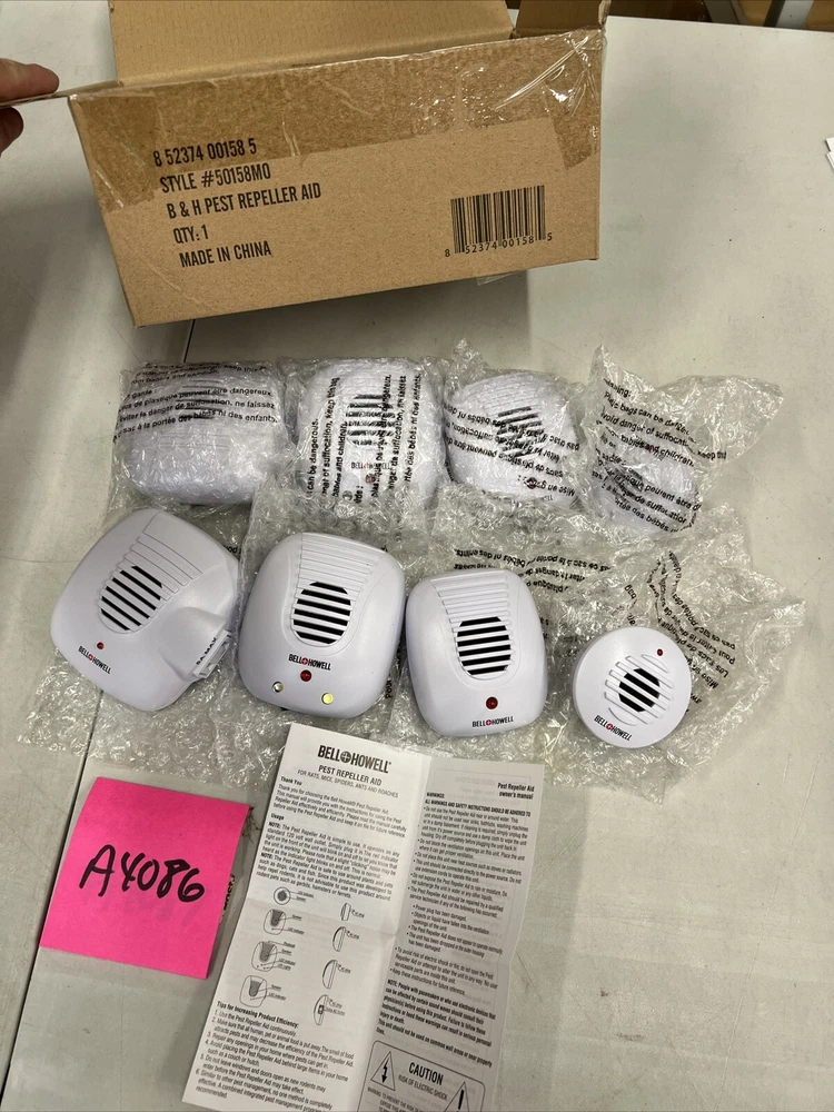 Lot Of 8 Bell & Howell White Ultrasonic Pest Repeller Complete Home Kit. Brand: Bell And Howell Color: White Type: Pest Repeller Power Source: Electric Indoor/Outdoor: Indoor Model: 2X SB-104 , 2X SB-118, 2X 50167 , 2X SB-113 Number In Pack: 8 Room: Any Room Help repel mice, spiders, and roaches from your home with this set of plug-in pest repellers that emit a sound that only pests can hear. Includes 8 plug-in pest repellers: 2 classic, 2 micro, two dusk-to-dawn classics, and two classic with outlets EPA Establishment Number 81956-CHN-001 UL listed New in box Opened one for photos See photos Comes from smoke free facility TERMS: *** FOR PO BOXES- If you have a PO Box and you want fedex shipping than you will have to change the address to your street address instead before paying. FedEx doesn’t ship to PO BOXES only USPS does.*** TERMS: Please read so there is no confusion about your purchase. FEEDBACK: I have a good track record regarding feedback. I am tired of stressing over feedback. There is NO reason to EVER leave me bad feedback. I offer FULL refunds with returns and that INCLUDES ME PAYING shipping both waysides .. if it’s not as described your 100% covered financially INCLUDING your original shipping and the return shipping and the purchase price. Pretty good deal for buyers as this is NO RISK to you at all as I am assuming ALL risk and stand behind my products. RETURNS: If you need to return an item because I missed something all you have to do is open a return and send me a picture of what I missed. I will accept the return if I miss something EVERY TIME. Please note if you have to return an item you must return all pieces and ship in the shipping box I sent as well. RETURN PROCESS: In the unlikely event of a return where I miss something: do not email me and verbally abuse me for missing something. I am human and can miss things. My volume on eBay is really high and I don’t have the energy to deal with angry people. No reason to be angry as I will work with you and you will be out NO money so keep CALM, no reason to stress out with my store!! I got you covered! All you need to do is open a return, send me a photo and I got you covered. Once the return is open I will approve so you get a label ( that I pay for) Once I get it back your original purchase price and original shipping are refunded. 100% refunds!!! NO REASON for bad feedback!!! International buyers I only ship through global shipping. When tracking is uploaded it will show as delivered at Kentucky. That is the global shipping hub. From here global shipping is in charge of the package. May take days for it to actually be delivered to your address. Please ask questions prior to purchase as the tracking through eBay does not show delivery to your address only the global shipping hub. If for some reason a delivery was damaged ( rarely happens) please call eBay they cover shipping damage since I use the global shipping. Shipping: We do not offer free shipping but our prices with shipping are generally very competitive. If you see free shipping it is because your not logged into your eBay account or there was an eBay error. Please check shipping quotes at time of purchase as the quoted shipping is correct. You will see this when you go to pay for the item. Most buyers know they need to be logged in but been having many ask why it’s not free when they go to pay. It’s because you were not logged in when you looked at the item but when you pay you must log in... ask before purchasing please if you have questions PLEASE READ CAREFULLY PRIOR TO BIDDING ON ITEM(S) If you are buying a used item it may have scratches and scuffs. Please review all 12 photos to see condition. Photos of used items are of actual product you will receive. We do our best to note any issues we see but we are human so take a look at Pics. We take 12 pics from all angles for your review. It is very sad that I have to even mention this but if you are buying something that takes a bulb and you see it works in my photos that means the bulb worked when I listed it. I am not responsible for the longevity of a light bulb. If one burns out plan on replacing it yourself... on that note... use the same mindset for batteries. Don’t plan on batteries lasting the life of a product if I say it comes with batteries. Sad I have to even mention this and not trying to be difficult but I have lost a lot of hair because of buyers arguing about 10 cent bulbs and life of batteries.. if your a seller you get it!! :) For you scammers out there our store policy for opening claims: we will 100% of the time have claims returned to us. If you open a claim just to get a product for free it will not work with our store. We do not allow buyers to keep products if they claim damaged. We will pay to have it returned and never allow buyer to keep product. Been on eBay a long time and have seen too many scammers. Now with that said we will 100% work with all our buyers to make your purchase / potential return process as smooth as possible. Just want everyone to know if something happens in shipping or we miss something in a listing you are 100% covered we just will not allow buyer to keep products for free when scammers can just claim damaged and keep products. Just not fair. ****Please make sure your address is correct before you pay as we can't change it per eBay policy. This is for your protection and ours. **** Winning bidder pays shipping If you want combined shipping I MUST be notified PRIOR to buyer paying YOU WILL AUTOMATICALLY RECEIVE TRACKING INFORMATION directly for the carrier once your package ships. Be sure to check your ‘junk mail’ box, as this type of email FREQUENTLY finds its way there. INTERNATIONAL SHIPPING We only offer global shipping now. FOREIGN BIDDERS are welcome! However, we will NOT UNDERSTATE THE VALUE OF AN ITEM, NOR DECLARE ITEM AS A GIFT ON THE CUSTOMS FORM. NO EXCEPTIONS. Frequently Asked Questions When will my item ship? Will it be packed 