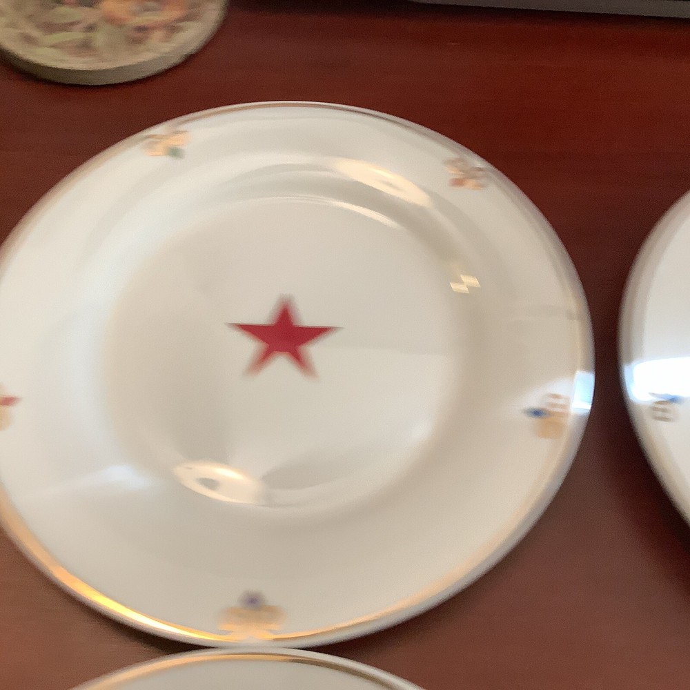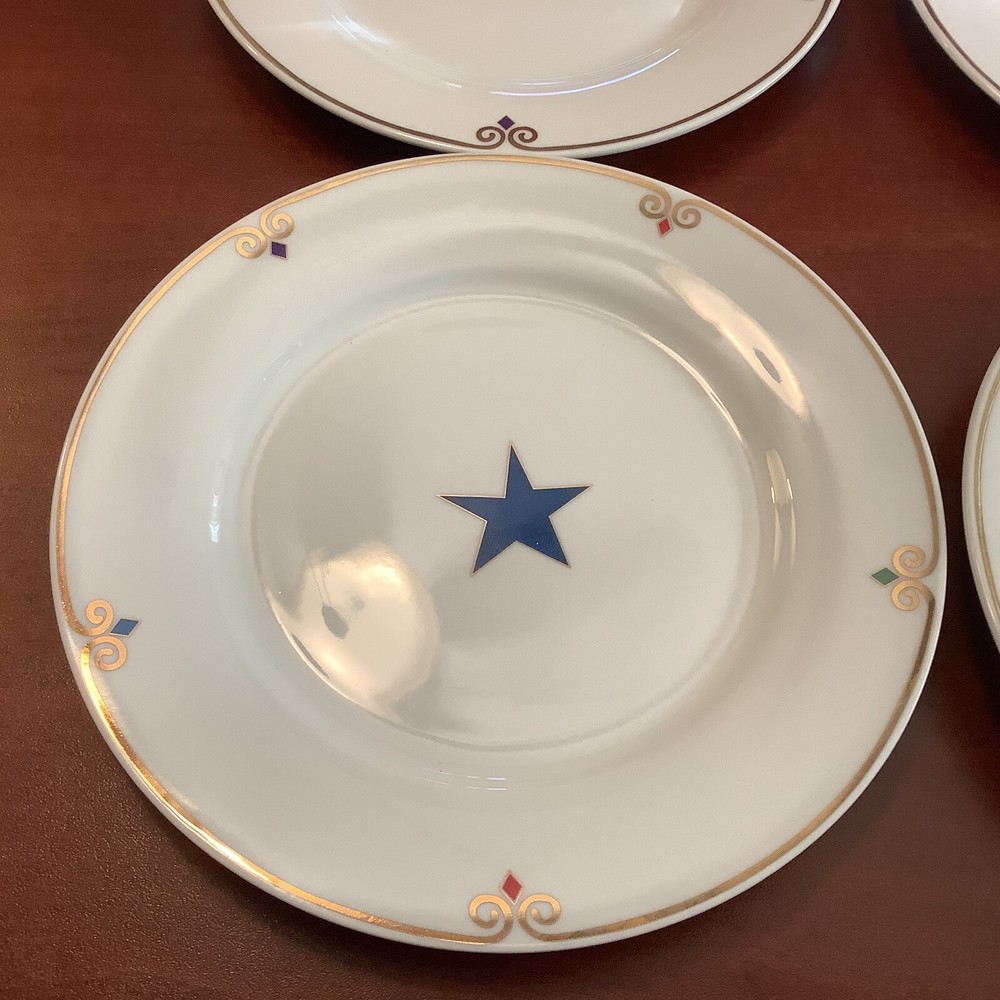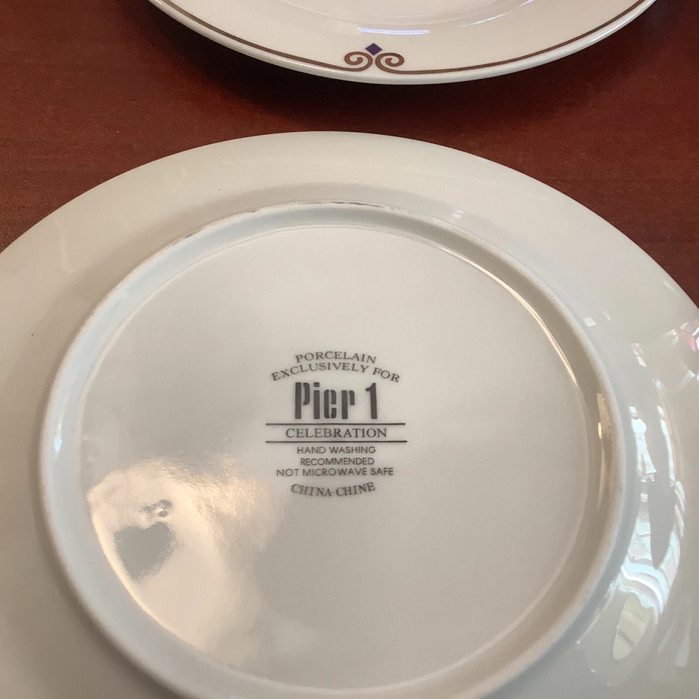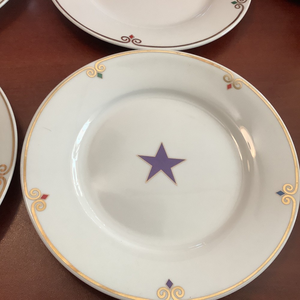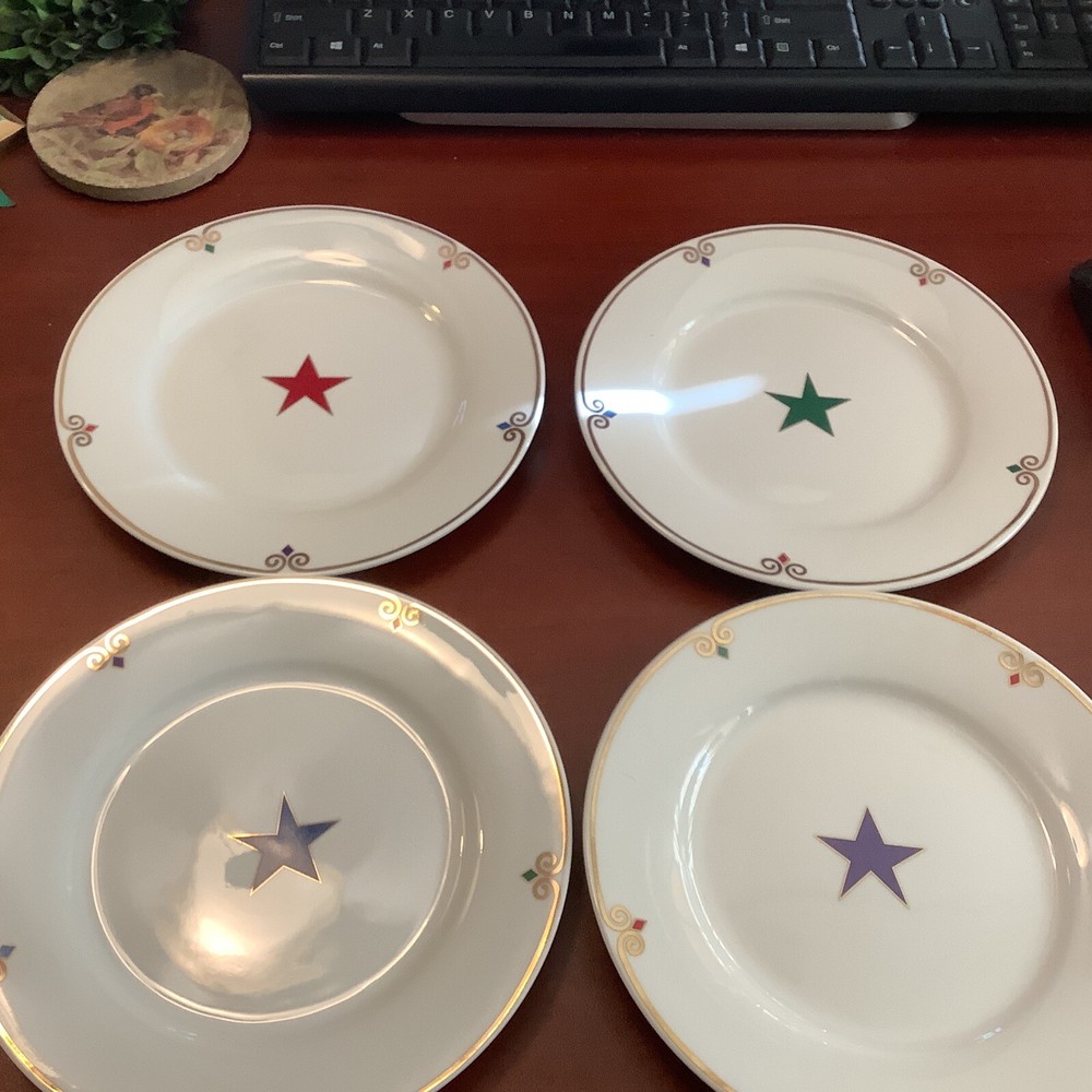Experience a celestial dining with this set of eight 7.5" Pier 1 Imports luncheon/salad plates in four different colors - red, blue, yellow, and green, featuring a stunning star pattern that will surely add a decorative touch to your table setting. Made of porcelain using a classic production technique, these plates bear a glossy finish that exudes elegance perfect for all occasions. Hand wash only, these plates are original with no manufacturer warranty. Ideal to use for a 4th of July party, a Memorial Day gathering~For Labor Day celebrations~ any parties or a family gathering, these plates are perfect for those who love to add a touch of uniqueness to their dining experience. Don't miss your chance to own these eight-piece star-patterned luncheon/salad plates and elevate your dining experience! They are all in excellent A+++ condition~ I have the following: (2) green stars (2) Blue stars (2) purple stars (2) red stars Inventory code #6941 SHIPPING is a flat $5.99 to continental continuous USA 🇺🇸 We pack very safe and secure and ship fast! Love ❤️ other items in our store? We will gladly combine shipping~ We reserve the right to ship via USPS Ground Advantage, USPS Priority Rate, UPS or FedEx depending on where you live, weight & size of the box~ All sales are final. We don’t do buyers remorse, but we do take care of our clients~ buy with confidence ~ Thank you for looking at our beautiful finds~
