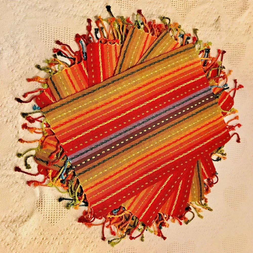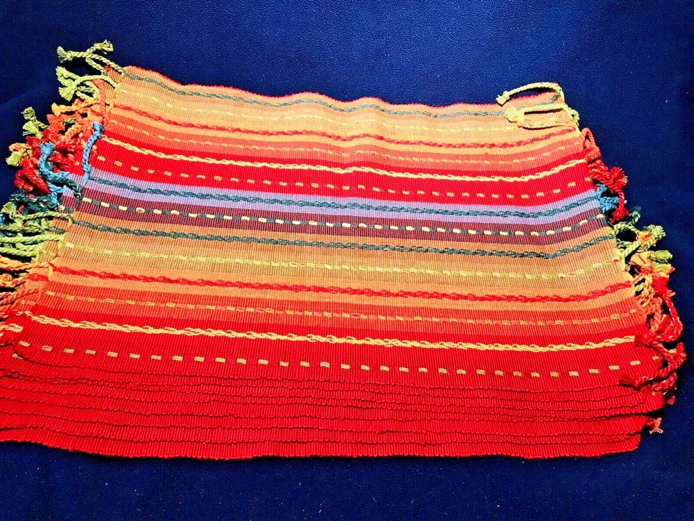 Add a touch of fall charm to your dining table with these 8 woven placemats from Pier 1. The twisted fringe design and Southwest Fall colors make them a perfect addition to your Thanksgiving decor. Made of high-quality cotton material, these rectangular placemats are both durable and comfortable to use. They are approx. 20 x14 Inches and are in great condition! Please see pictures for details. Suitable for multipurpose occasions, they are a great addition to any table.