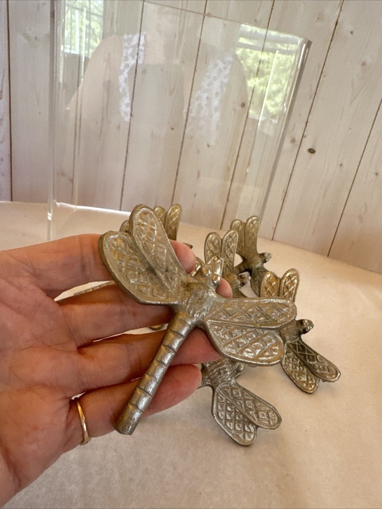 Elevate your dining experience with these exquisite Trillium Design Imports Pewter Silver Dragonfly Napkin Rings. Crafted with precision in India, these rings showcase an elegant dragonfly pattern that will surely captivate your guests. The set includes 8 napkin rings, each measuring 3 x 2 3/4 inches, perfect for adding a touch of sophistication to your table setting.