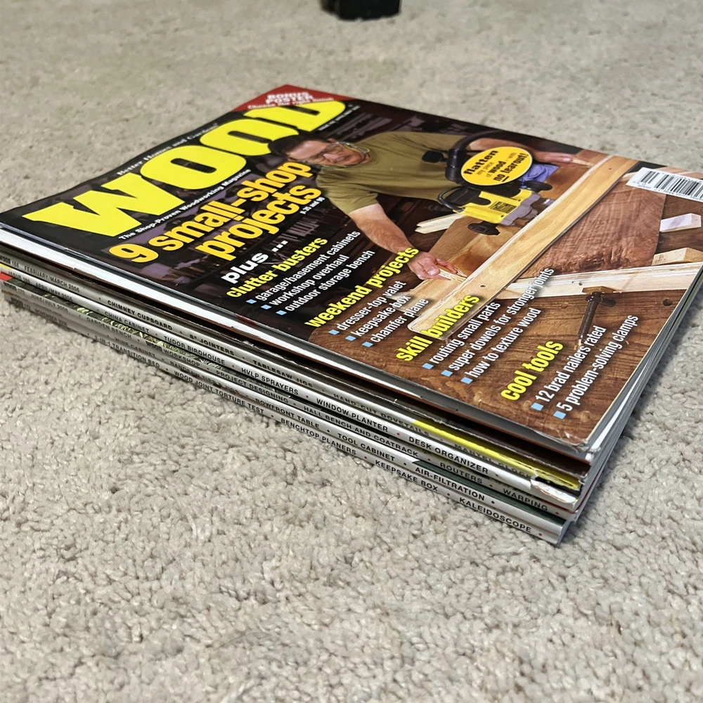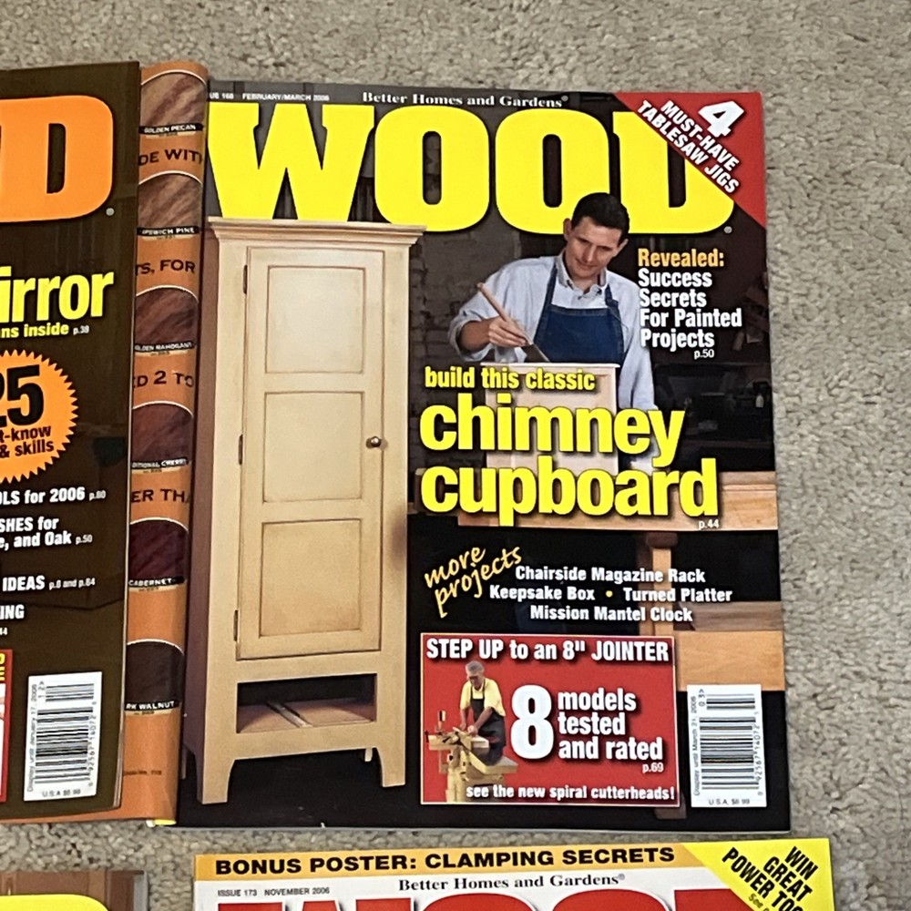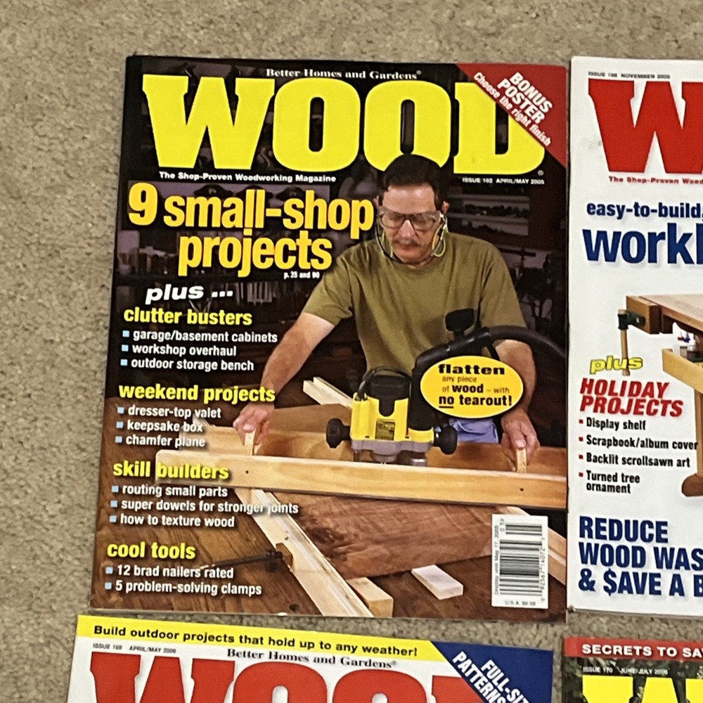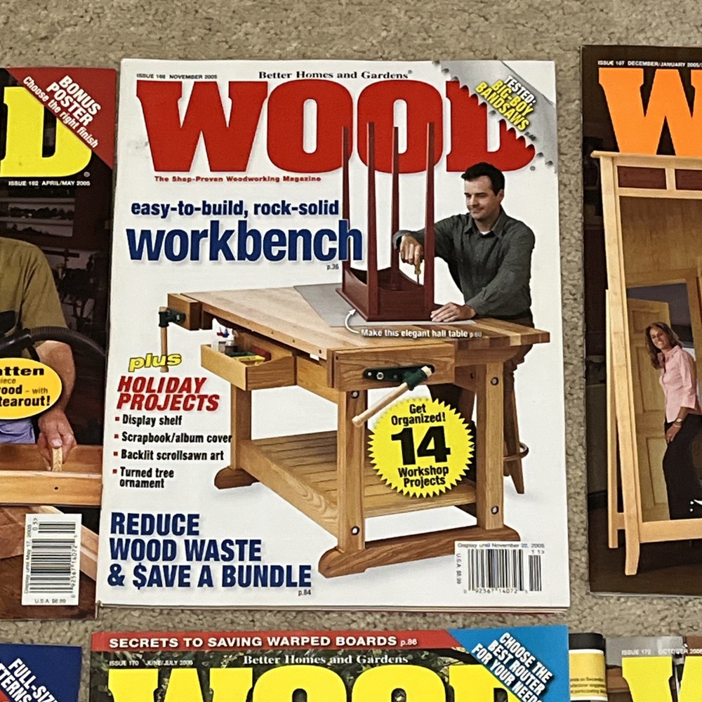 Selling a bunch of magazines focusing on woodworking. This is one listing but please check my other listings as I have a lot of them. Below is the inventory of this listing with observations/defects. - April/May 2005 - 162 - November 2005 - 166 - December 2005/January 2006 - 167 - couple of marks on cover where label was removed - February/March 2006 - 168 - April/May 2006 - 169 - June/July 2006 - 170 - October 2006 - 172 - November 2006 - 173 Thanks for looking!