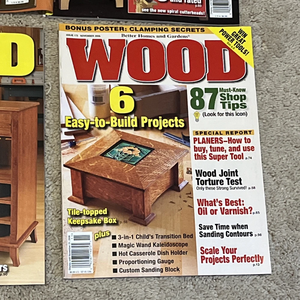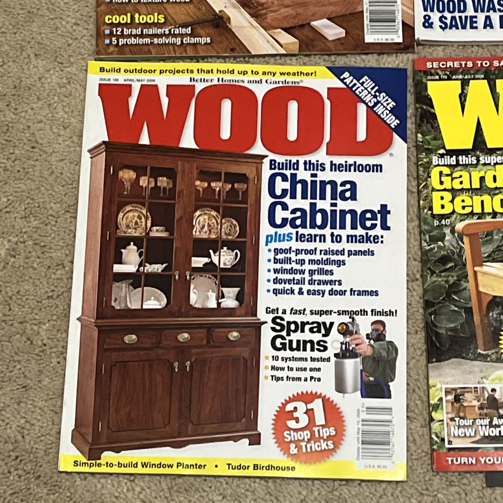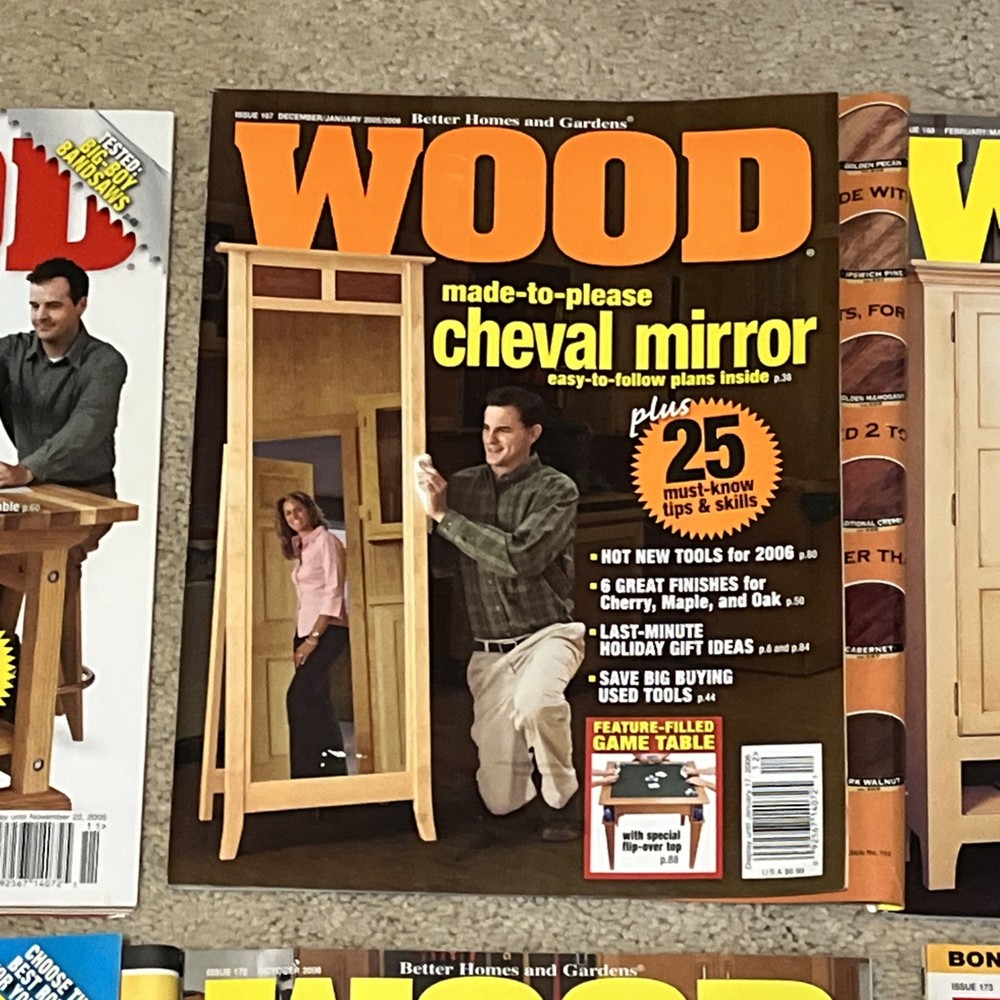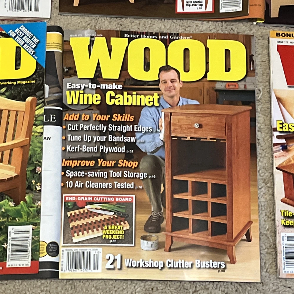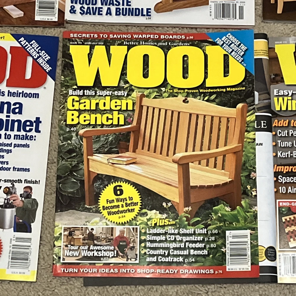 Selling a bunch of magazines focusing on woodworking. This is one listing but please check my other listings as I have a lot of them. Below is the inventory of this listing with observations/defects. - April/May 2005 - 162 - November 2005 - 166 - December 2005/January 2006 - 167 - couple of marks on cover where label was removed - February/March 2006 - 168 - April/May 2006 - 169 - June/July 2006 - 170 - October 2006 - 172 - November 2006 - 173 Thanks for looking!
