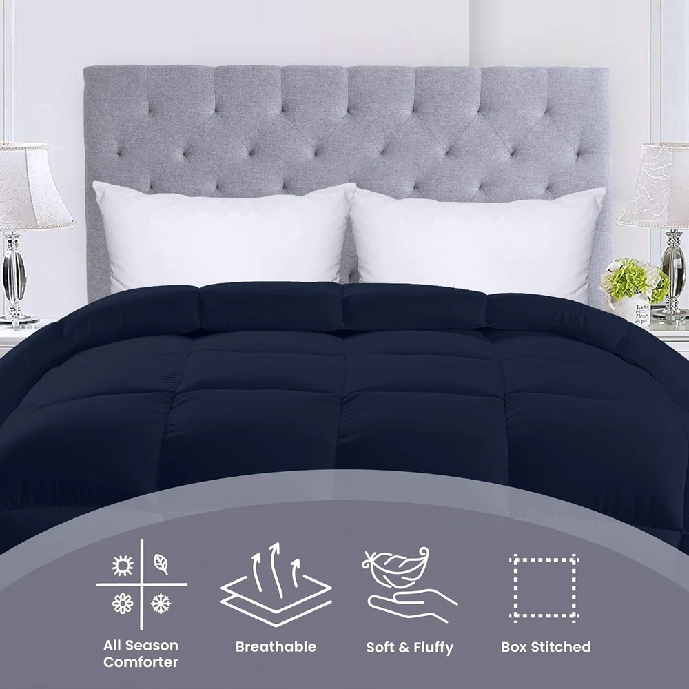 · 100% Polyester · HIGH-QUALITY - Ensures durability through strong stitching and is manufactured using high-quality filling · BOX STYLE STITCHING - Crisp looking comforter featuring Piped Edges with an elegant Box Style Stitching Pattern that not only looks beautiful, but prevents the fill from shifting during the night, ensuring a comfortable sleep · SOFT & COMFORTABLE - Made using soft material with siliconized fiber filling that provides a comfy and cozy feel throughout the night · MACHINE WASHABLE - Machine wash in gentle cycle with cold water, sun-dry or tumble dry on low when needed