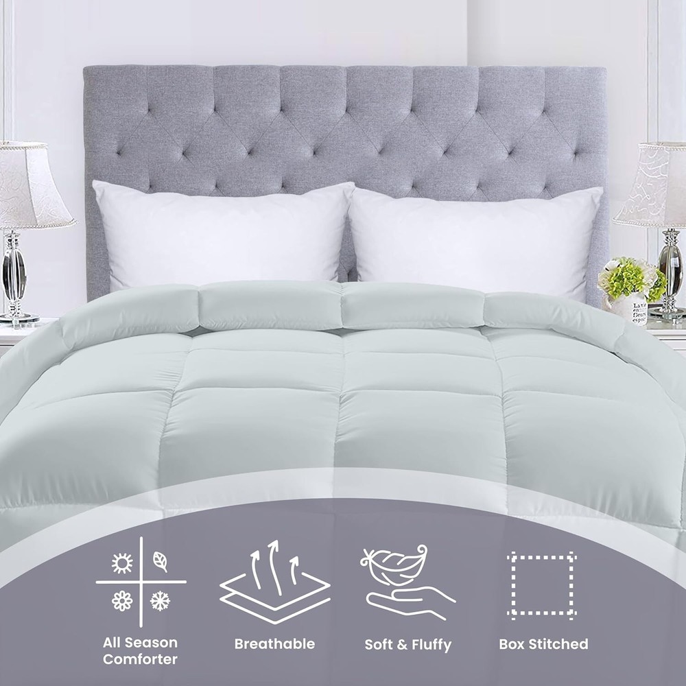· 100% Polyester · HIGH-QUALITY - Ensures durability through strong stitching and is manufactured using high-quality filling · BOX STYLE STITCHING - Crisp looking comforter featuring Piped Edges with an elegant Box Style Stitching Pattern that not only looks beautiful, but prevents the fill from shifting during the night, ensuring a comfortable sleep · SOFT & COMFORTABLE - Made using soft material with siliconized fiber filling that provides a comfy and cozy feel throughout the night · MACHINE WASHABLE - Machine wash in gentle cycle with cold water, sun-dry or tumble dry on low when needed