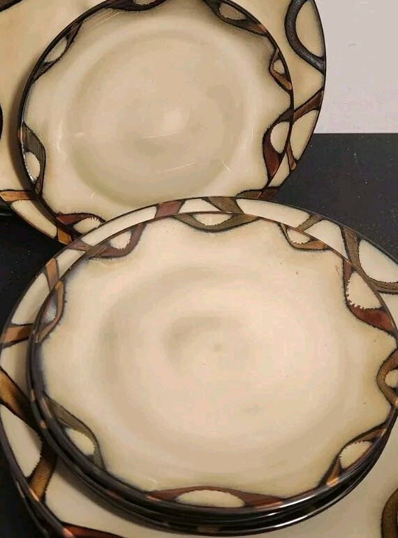 Pier 1 Imports Wave Stoneware set of 4 Salad 8½" Plates EUC Excellent pre-owned condition I will not separate & I'm not taking offers. At the time of listing, I also have additional pieces listed in this pattern. Combined shipping is done in the form of a refund once the orders are packed. Max weight per box is approx 25lbs.