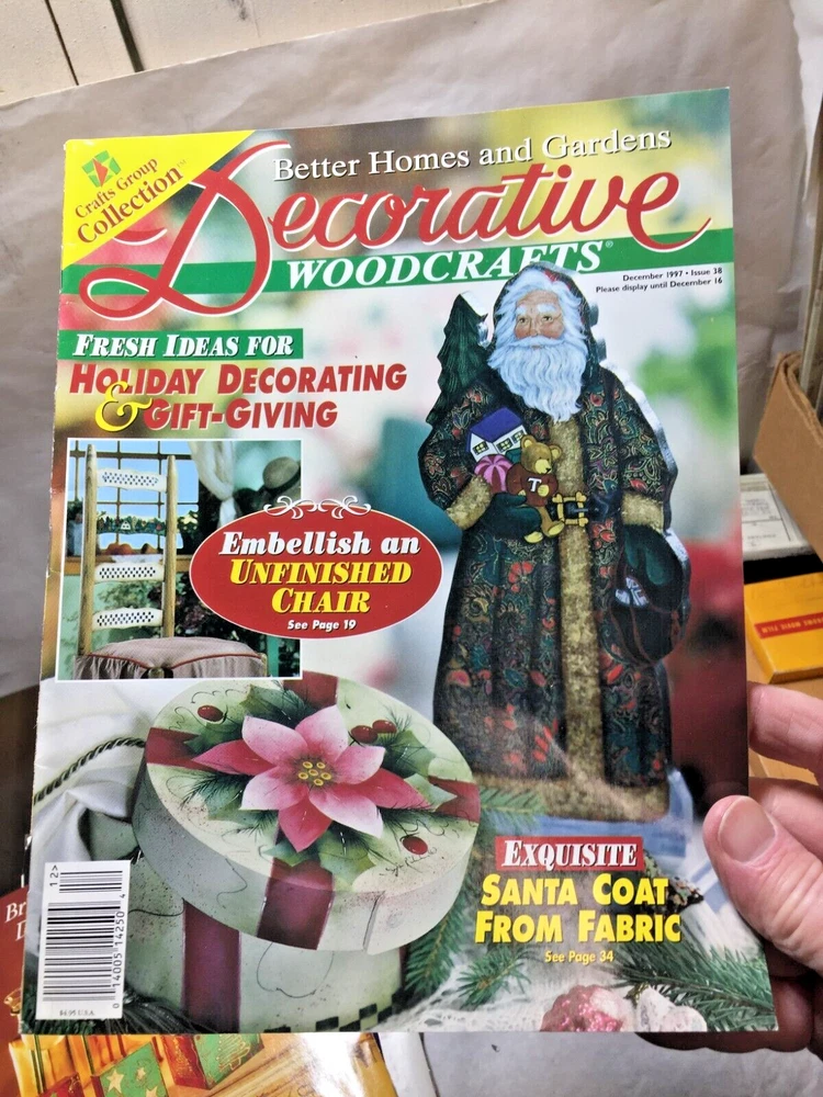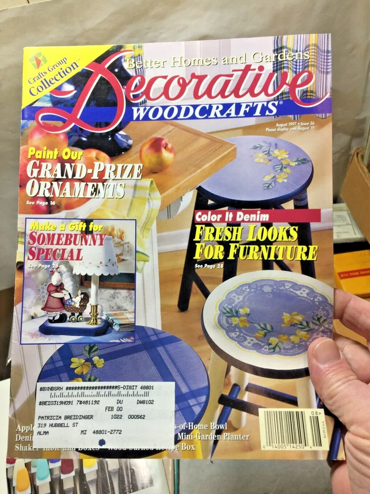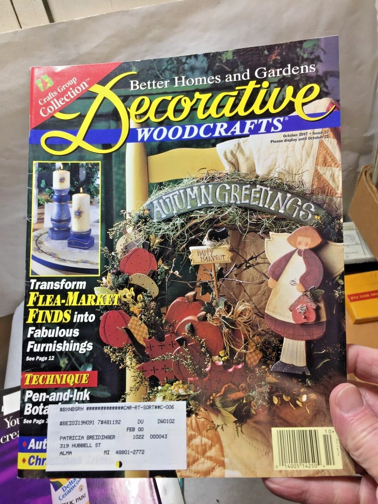 These vintage Better Homes & Gardens woodcraft magazines are in great condition, complete with mailing labels. The collection includes a nice mix of 1997 and 1998 issues, perfect for DIY enthusiasts looking for classic project ideas. The variety of seasonal themes makes them a treasure trove for crafters!