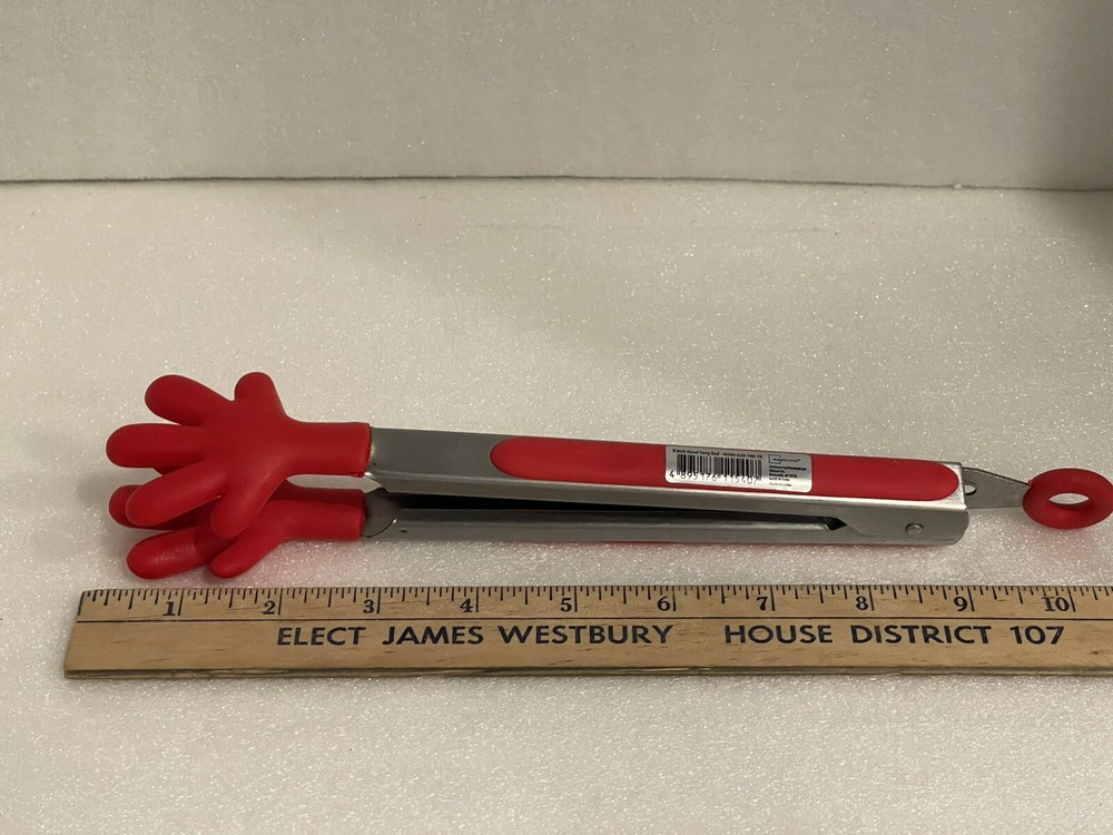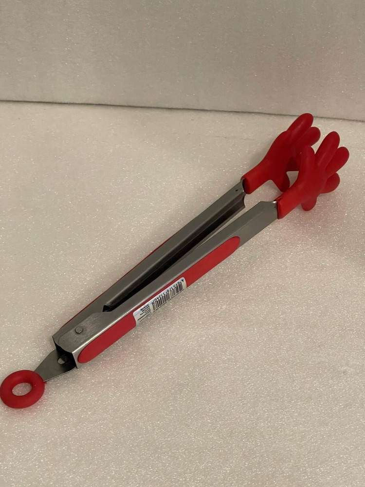 9" Anti-Scald Silicone Buffet Tongs Food Clamp Bread BBQ Baking Frying Salad Red...