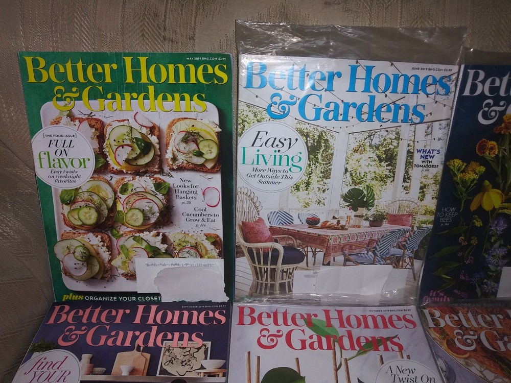 9 Better Homes & Gardens Magazines 2019 2020 Life In Color. May 2019 The Food Issue Full On Flavor June 2019 Easy Living New Sealed Unopened August 2019 Savor Summer New Sealed Unopened September 2019 Find Your Creative Spark October 2019 A New Twist On Fall New Sealed Unopened Halloween November 2019 The No Fuss Holiday Hosting Guide New Sealed Unopened Thanksgiving December 2019 Come On In 126 Ways To Nake Holiday Memories Youll Cherish Christmas January 2020 Fresh Start February 2020 From The Heart New Sealed Unopened Valentines Day Condition is Good. Shipped with USPS Priority Mail. Item is not from a smoke free home.