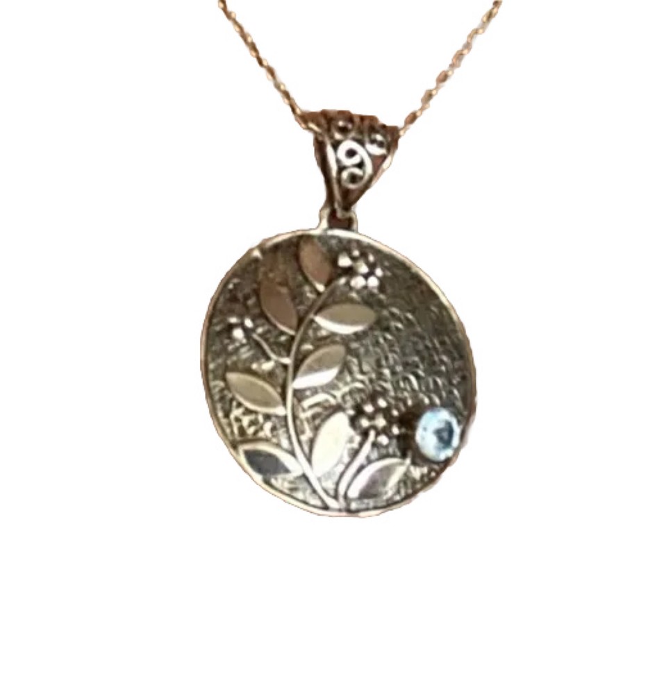 925 crystal cavern imports topaz necklace. Beautiful Necklace, floral print, blue topaz stone.
