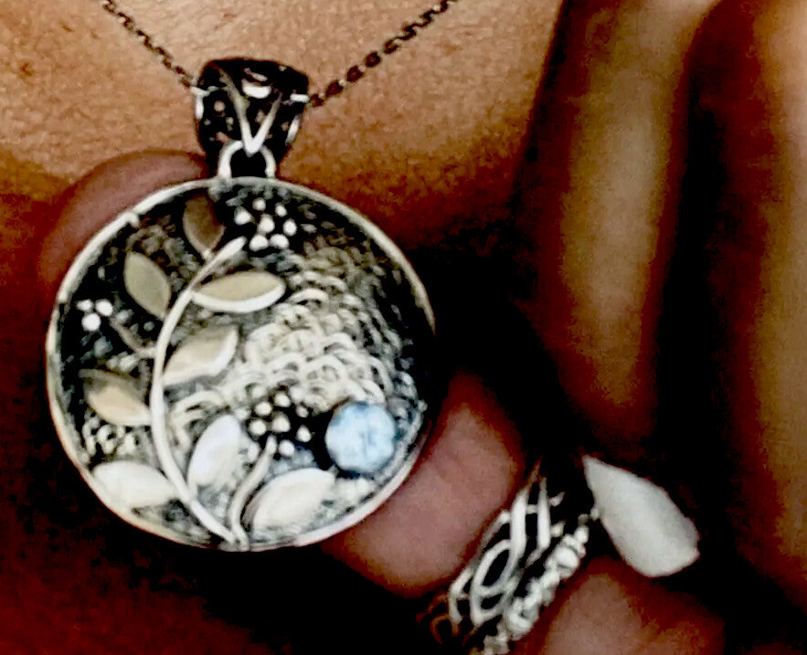 925 crystal cavern imports topaz necklace. Beautiful Necklace, floral print, blue topaz stone....