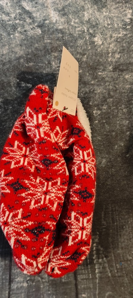 new slippers socks gripping bottoms a new day A new day soft socks red, black and white snowflake NEW Slippers socks one size gripper bottoms 1 pair
