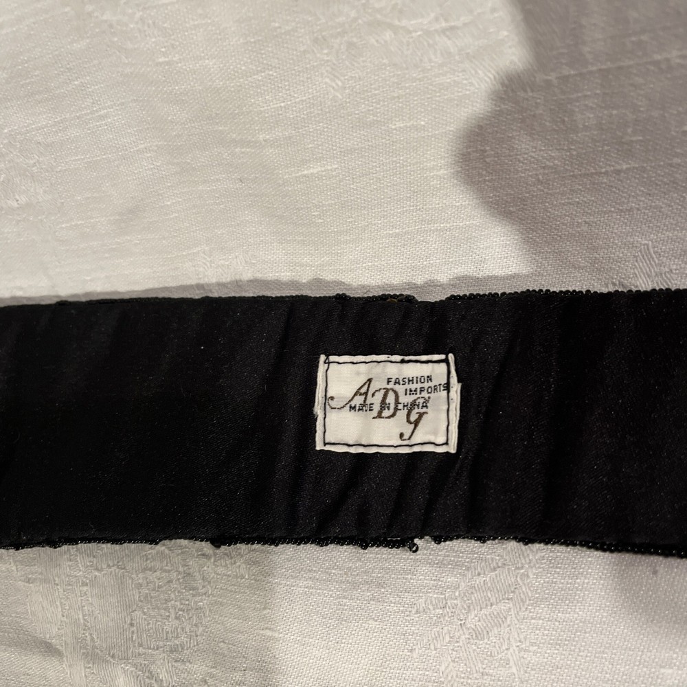 ADG Fashion Imports Beaded Belt Rose Petal Design, Multi Color 33 Inches Long. 3 snap adjustments . Red, Gold, Silver, Green, Blue roses with black beaded background on black fabric. Like new...