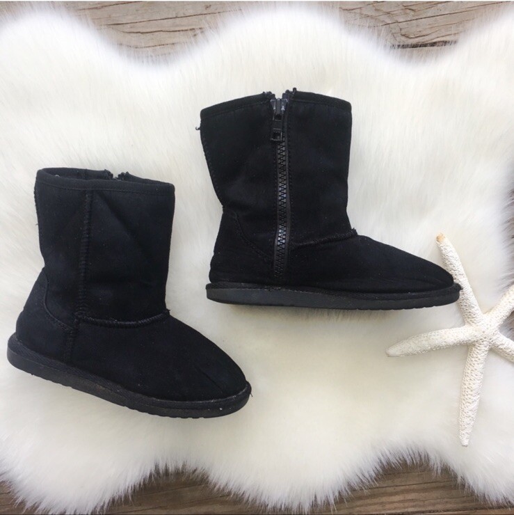AIRWALK Black Shearling Style Short Boots 8.5 Size 8.5 Color: Black Side zip Very Good condition gentle wear no rips (a toe scuff) So much life left. A nice vegan ugg alternative See pics...