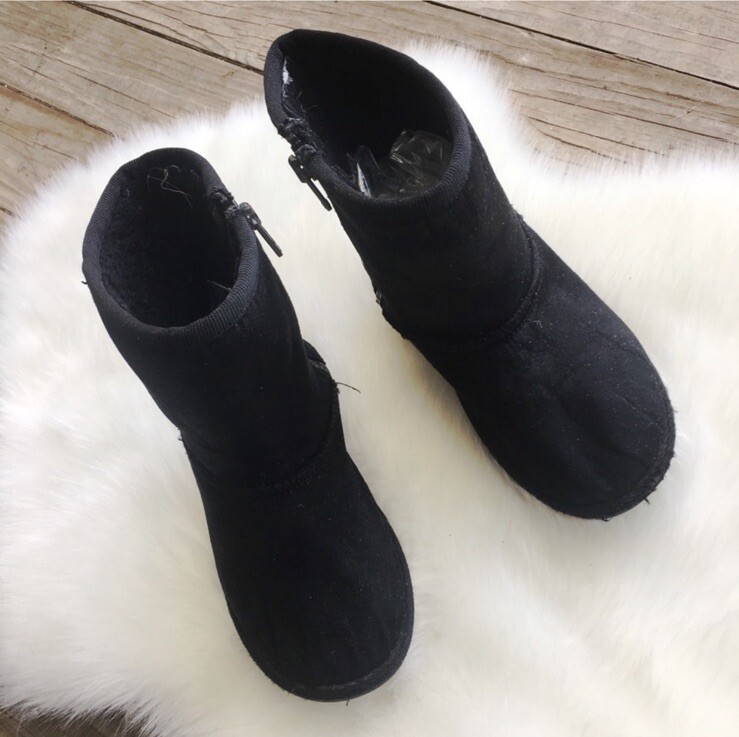 AIRWALK Black Shearling Style Short Boots 8.5 Size 8.5 Color: Black Side zip Very Good condition gentle wear no rips (a toe scuff) So much life left. A nice vegan ugg alternative See pics