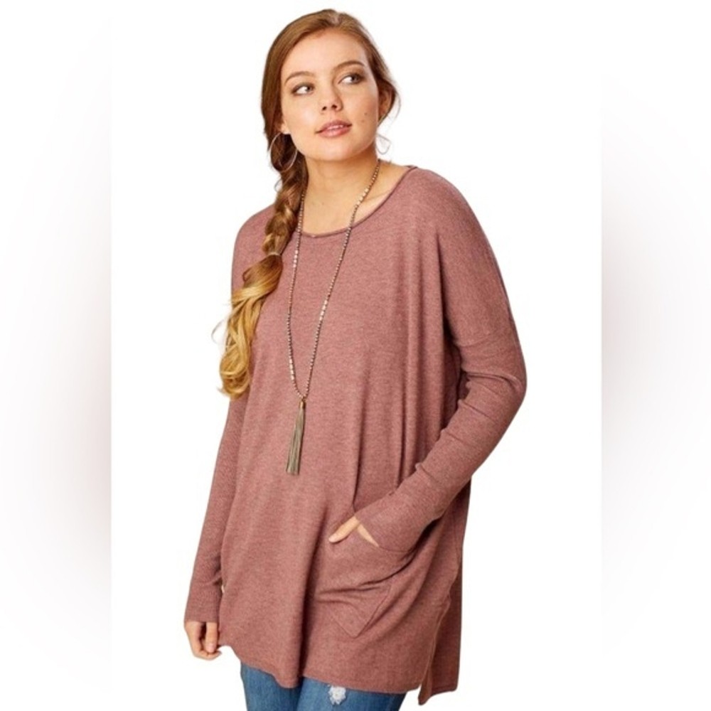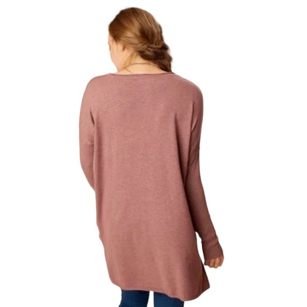 This cozy pullover sweater from ALTAR'd STATE is perfect for any occasion. The relaxed fit and soft knit fabric make it incredibly comfortable, while the round neckline and long sleeves give it a classic look. The sweater comes in a beautiful pink color and features front pockets, making it both functional and stylish. It is made from a combination of rayon and cotton, ensuring that it is comfortable to wear all day long. This sweater is great for travel, workwear, or casual outings. It is available in size L and is suitable for regular size types. The sweater is perfect for fall, winter, and spring seasons. With its solid pattern, it can be easily paired with other clothing items to create a variety of looks. The ALTAR'd STATE Cozy Comfort Pullover Sweater is a must-have for any woman's wardrobe. Altar’d State Heathered Brick Cozy Comfort Pullover Fabric has stretch. Material: Cotton and Rayon Size: Medium/Large Measurement: Length: 30” Pit to Pit: 27” Excellent preowned condition no rips, tears or stains A3
