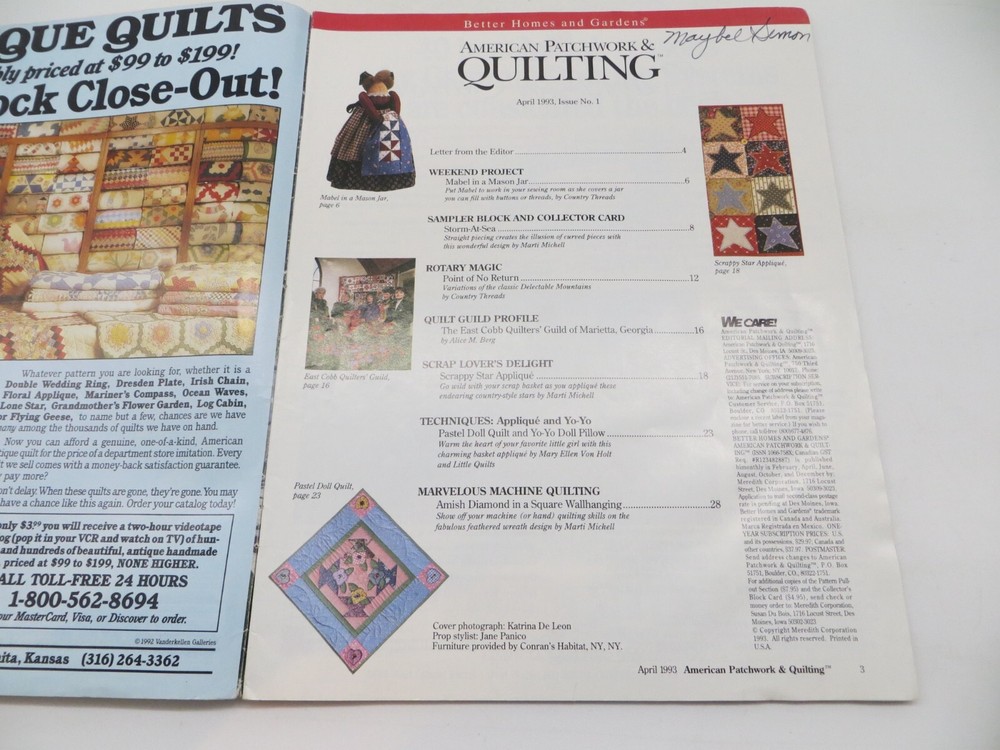 AMERICAN PATCHWORK & QUILTING MAGAZINE APRIL 1993...