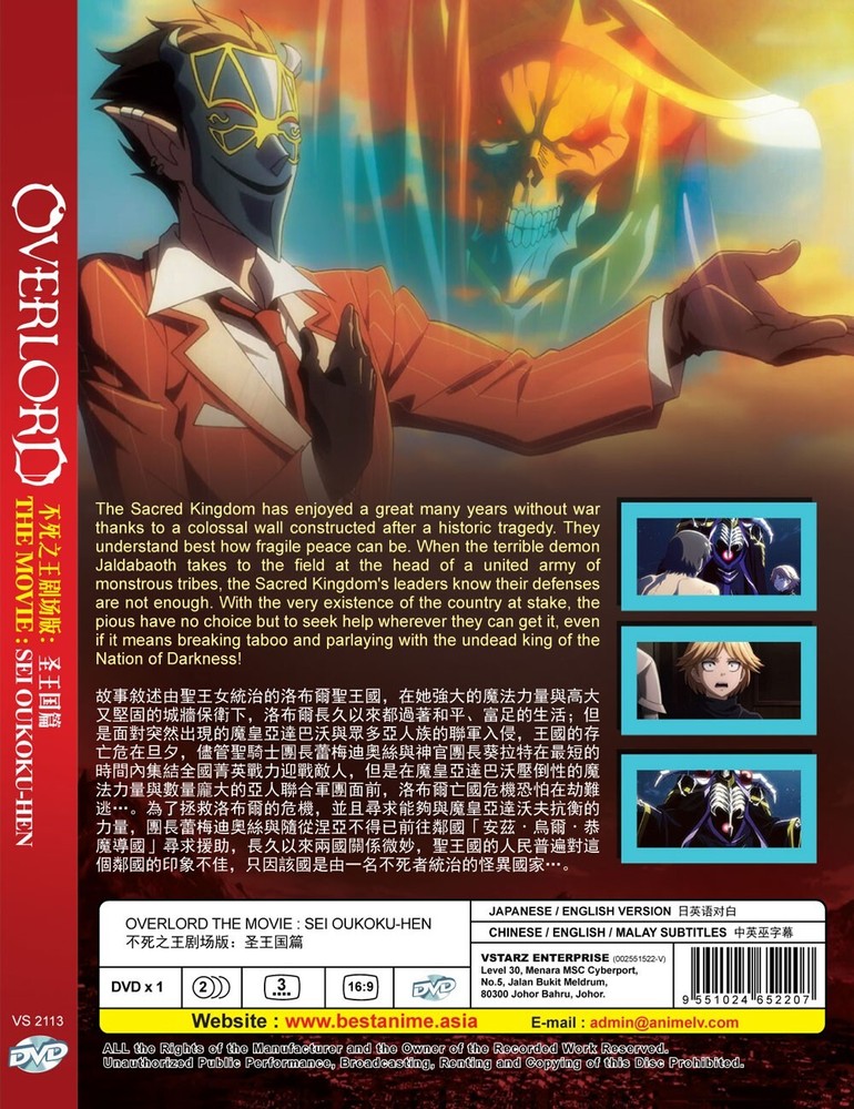 JAPANESE ANIMATION DVD TITLE : OVERLORD THE MOVIE: SEI OUKOKU-HEN * ENGLISH DUBBED * Number of Episode : Movie Number of Disc : 1 Language : Japanese / English Subtitle : English / Chinese Format : PAL, REGION ALL Condition : NEW, ORIGINAL & LICENSED ITEM PAYMENT We Accept PAYPAL ONLY Payment. We Are PayPal Verified Buy With Confidence. DELIVERY Free Register Track Your Shipment 10 ~ 21 Days Without Sat ~ Sun Working Days. Item Will Be Shipped ONLY After Clearing of Payment. All Order Will Process 2 ~ 3 Working Days ( NOT INCLUDED WEEKEND OR PUBLIC HOLIDAY ) After Received The Payment. WE Only Ship To Confirm Address On " EBAY INVOICE ORDER DETAIL ". RETURN Buyer Pay The Return Postage. 30 Days Returnable. Items Must Be Returned In Perfect Original Condition, Buyer Responsible For Returns Shipping Cost. Refunds Will Be Arranged Thru PAYPAL . FEEDBACK Should Any Problem Arise, Please E-MAIL Let Us Know, We Will Do Our To Correct Any Problem.
