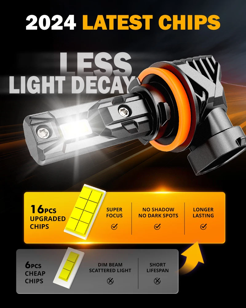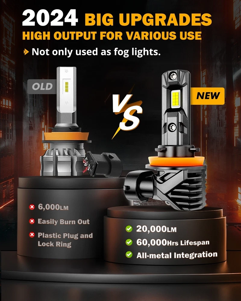Ka-floor Welcome Description MAIN FEATURES FANLESS & WIRELESS DESIGN, PLUG AND PLAY The fanless design effectively prevents dust from entering and reduces noise. The wireless design makes the light body more compact, eliminating the need for bulky drivers and additional wiring harnesses, and can be adapted to more models. 5-minute installation, no additional tools or modifications are needed. Simply twist off the original car lamp, insert the Q15 bulb, and rotate to lock it in place. HIGH BRIGHTNESS Equipped with high-power 3570 CSP LED Chips, 500% as bright as your original halogen fog light bulbs. 60W 18000LM per set light output provides strong penetration that enhances visibility in foggy, rainy, snowy, and other extreme weather conditions. PERFECT BEAM PATTERN LED bulb features a 1:1 halogen filament design that perfectly replicates the original OEM bulb beam pattern, ensuring even light distribution, providing clear vision, and avoiding glare to oncoming vehicles. 60,000HRS LONGER LIFESPAN The full aviation aluminum alloy body, single copper tube heat conduction, and unique hollow heat sink design ensure the maximum heat dissipation effect ensuring a longer lifespan of up to 60,000 hours. BUILT-IN CAN-Bus New upgraded driver system, improves the compatibility with 99% of vehicle's computer system without error. Some sensitive car brands like Mercedes-Benz, BMW, Volvo, Dodge, Ford Fusion, Ford Focus, Ford Escape, etc, may flicker after installation (not a quality issue), specific Canbus decoders are needed. SPECIFICATIONS LED Type: CSP 3570 Efficacy(2/pcs): 60W LED Quantity(per bulb): 16pcs (Single beam socket) Effective Lumen(2/pcs): 18000 LM Current Draw: 2.5A (±0.2A) Operating Voltage: 9-12V Color: 6500K Cool White Material: Aviation 6063 Aluminum Heat Dissipation Mode: Aluminum Dissipation LED Lifetime: 60000 hours Waterproof: IP68 Ambient Operating Temperature: 45-celsius degree~150 celsius degrees PACKAGE INCLUDED 2PCS/4PCS/6PCS LED Light Bulbs Product Display Payment We accept eBay payment via eBay Secure Check-Out only. Payment is expected within 7 days of auction close. Unpaid Items will be forfeited per eBay. Immediate payment needs to be processed for items with Add to Cart option so that any promotional discounts can be applied to your order immediately. Shipping Notice: 1 .We do everything we can to ship your orders out as soon as possible. 2. Shipping and Handling: We process orders within one business day after the payment was clear. ---For domestic economic shipping, It normally takes 2-8 days for delivery. We may ship your order(s) from different warehouses for expedited delivery as we utilize alternative warehouses across the Continental United States.You may upgrade to UPS 3-day Selected which delivery time is typically 1-3 business days. Please be noted that, this service is more recommended for Monday-Thursday orders. Orders on Friday may be processed on following Monday by UPS, according to UPS's policy. ---For International Orders, items may be shipped from our warehouse in south China. Both are the same products and same warranty. Duties and taxes may apply. Please check with your country's custom and eBay policy for more information. Returns Our 30-day Satisfaction Guarantee assures our customers that they will receive all orders promptly and exactly as described. In addition, it allows customers to return new and unused products in their original factory condition for any reason within 30 days from the date of purchase. 1. All returns must be pre-approved by ka-floor and have a return merchandise authorization(RMA) number. Unauthorized returns will not be accepted. 2. Buyers are responsible for appropriate packing, returning shipping cost, insurance and returning the item in "new" condition. Used items will not be accepted for return. 3. We will replace the returning item with an identical item, issue a full store credit or a full refund. The sole and exclusive maximum liability to ka-floor arising from any product sold on ka-floor ebay account shall be the price of the product ordered. Feedback 1. We appreciate your business and strived to improve our customer service and our commitment to quality. 2. We will leave a positive feedback immediately after payment is received. We appreciate a positive feedback as much as you do. 3. If for some reason there is any issue with the purchase, please contact us prior to leaving feedback, and we will be glad to work with you to have it resolved. Contact us Our working time: Monday to Friday, 9:00~18:00 For inquires and customer support, please send your email via ebay email system. All emails will be responded to within 24 hours during business days. Thank you for visiting my store!