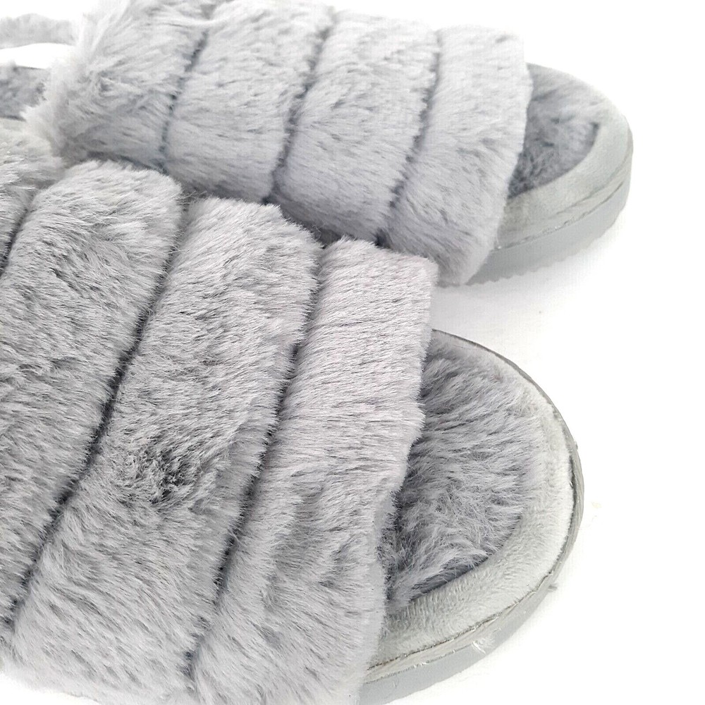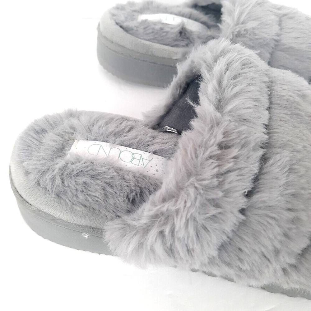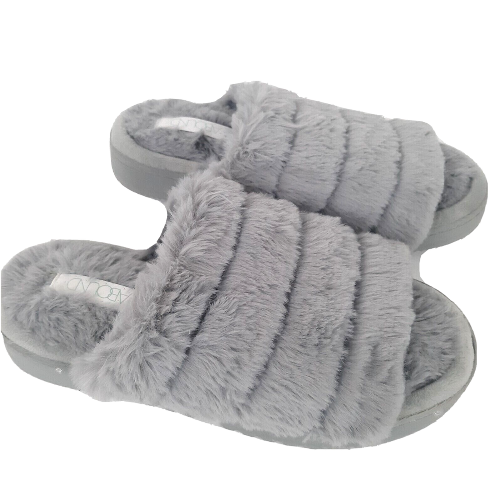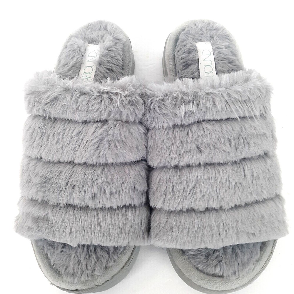 New Without Tags: Abound Gray Fluffy Slide-On Slippers. Size Small 5/6...