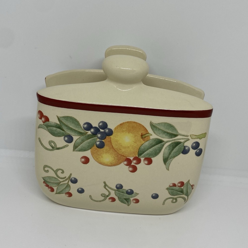 Corelle Coordinates Napkin Holder Abundance Fruit Design Jay Import Nice condition - shiny, vivid design with no chips or cracks. Condition is Preowned and Ships USPS Ground Advantage. Please message for additional information or photos if needed. Thanks for viewing and please visit again!