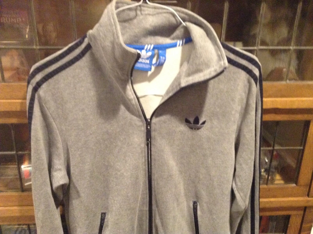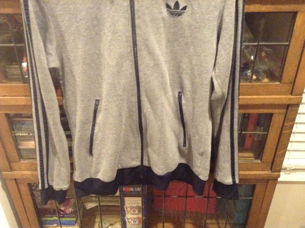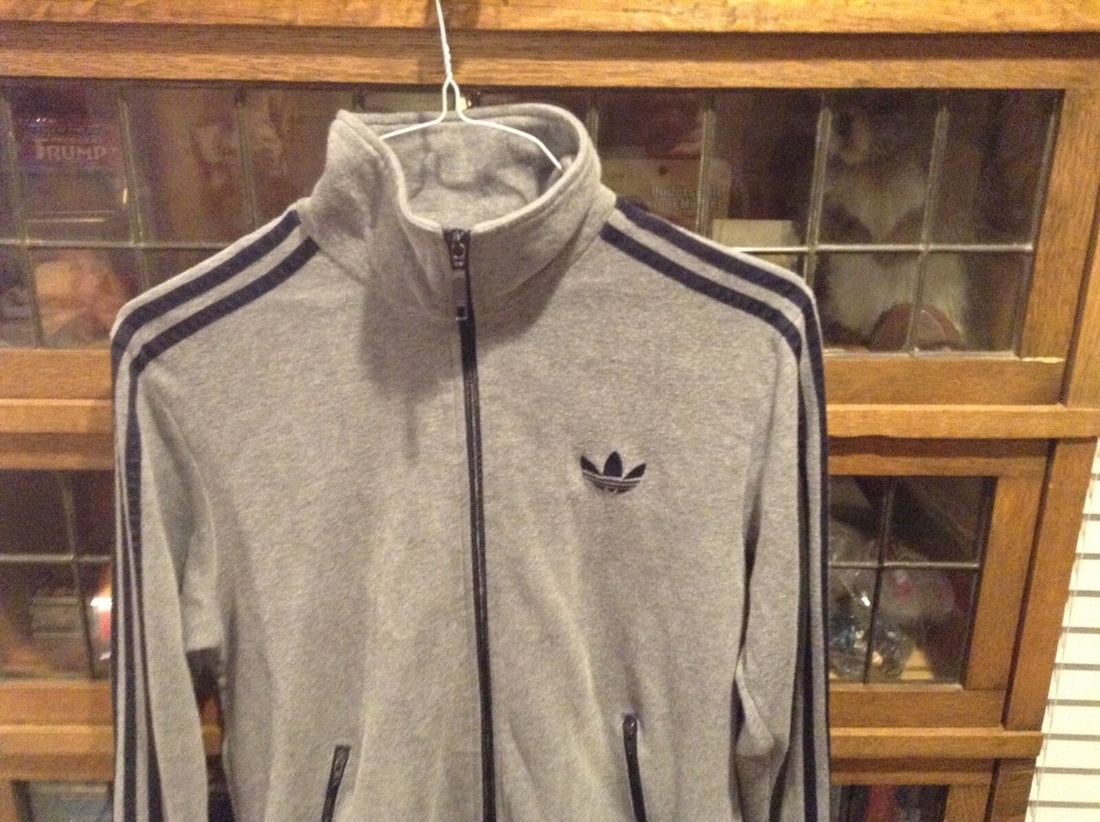 Adidas Originals Full Zip Trifold Gray/Navy Mock Neck Sweatshirt SZ M - Cool. Sweatshirt/Track suit is in EUC. No rips or stains. Super lightly used per the pictures. Great originals full zip. Pit to ...
