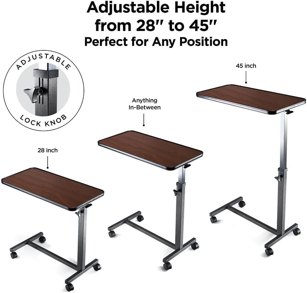 Upgrade your bedside convenience with our Adjustable Overbed Bedside Table. Designed for both hospital and home use, this versatile table features smooth-rolling wheels for easy mobility and an adjustable height to suit your needs. Perfect for meals, reading, or working from bed, it provides a stable and spacious surface. The sleek design fits seamlessly into any room decor, offering functionality without compromising on style. Enhance your comfort and productivity with this reliable overbed table. Bullet Points Adjustable Height : Easily adjusts to accommodate different heights, ensuring a perfect fit for any user. Smooth-Rolling Wheels : Equipped with wheels for effortless movement and positioning, making it ideal for both hospital and home use. Spacious Surface : Provides ample space for meals, laptops, books, and other necessities, making it perfect for bedside activities. Durable Construction : Built with high-quality materials for long-lasting use and stability. Versatile Design : Ideal for use in hospitals, homes, and care facilities, offering multifunctional support wherever needed. Easy to Clean : Smooth surface and materials allow for quick and easy cleaning, ensuring hygiene. Stable Base : Features a sturdy base that ensures stability and prevents tipping during use. Sleek and Modern : Stylish design that complements any room decor, adding functionality without sacrificing aesthetics. Tool-Free Assembly : Quick and easy to assemble without the need for any tools, so you can start using it right away. Compact Storage : When not in use, the table can be easily stored away without taking up much space.