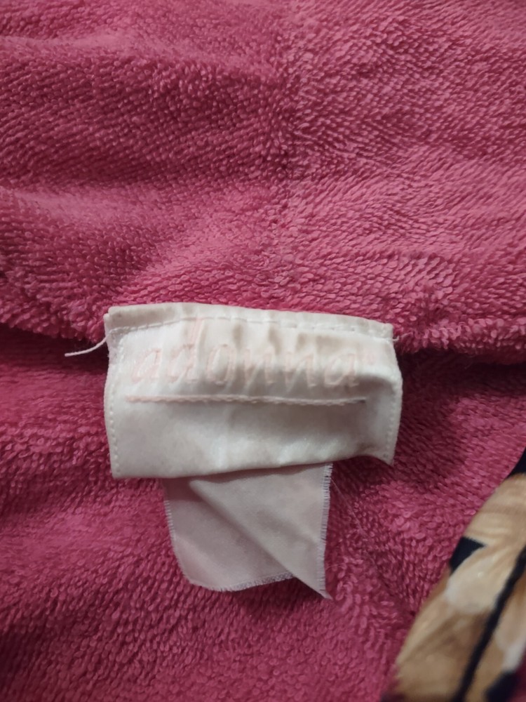 This is an Adonna pink floral robe, designed for women in size Medium. It is cozy and comfortable, suitable for lounging or relaxing at home....