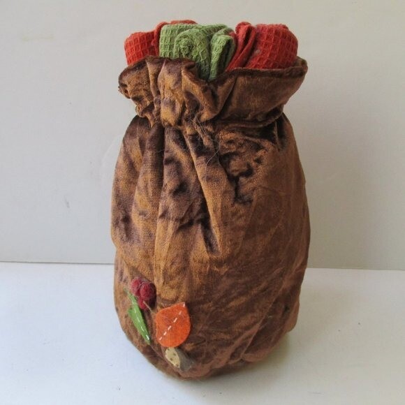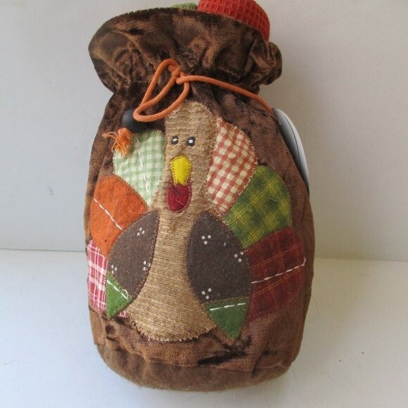 DII - for the home - Adorable Turkey Patchwork Gift Bag and Kitchen Towel Set. Includes 3 rust, orange and green 16" x 26" towels. Polyester drawstring pouch. NWT. All measurements are approximate. J0501