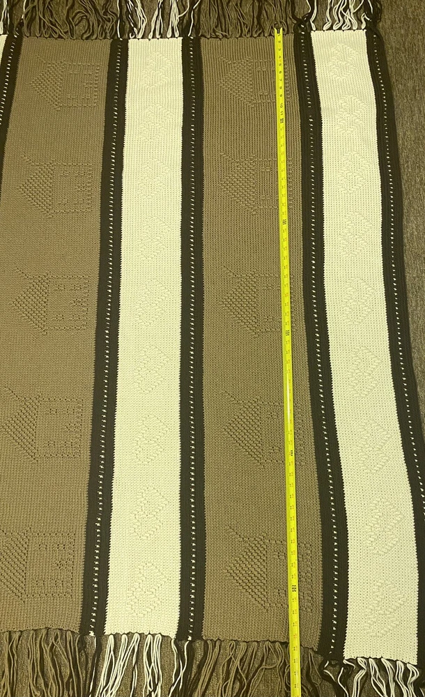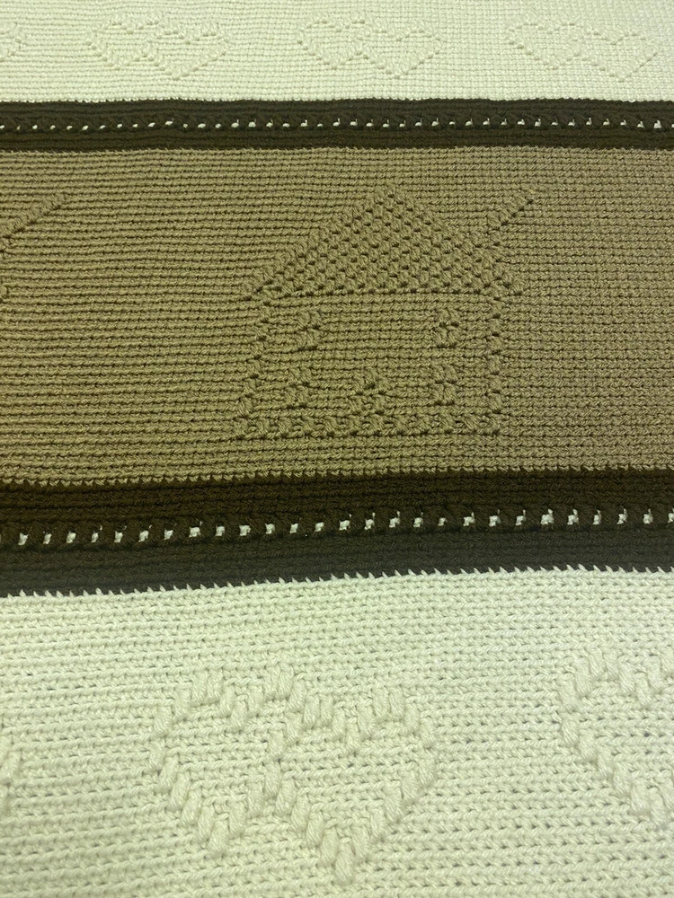 This gorgeous handmade blanket has become my favorite cozy companion! The beautiful raised pattern in warm browns and cream adds such charming texture to my living room. It's surprisingly soft and the perfect size for curling up on the couch during movie nights. The attention to detail in the crochet work is absolutely stunning - you can really feel the quality craftsmanship. It's both beautiful and functional, keeping me warm while adding rustic elegance to my space.