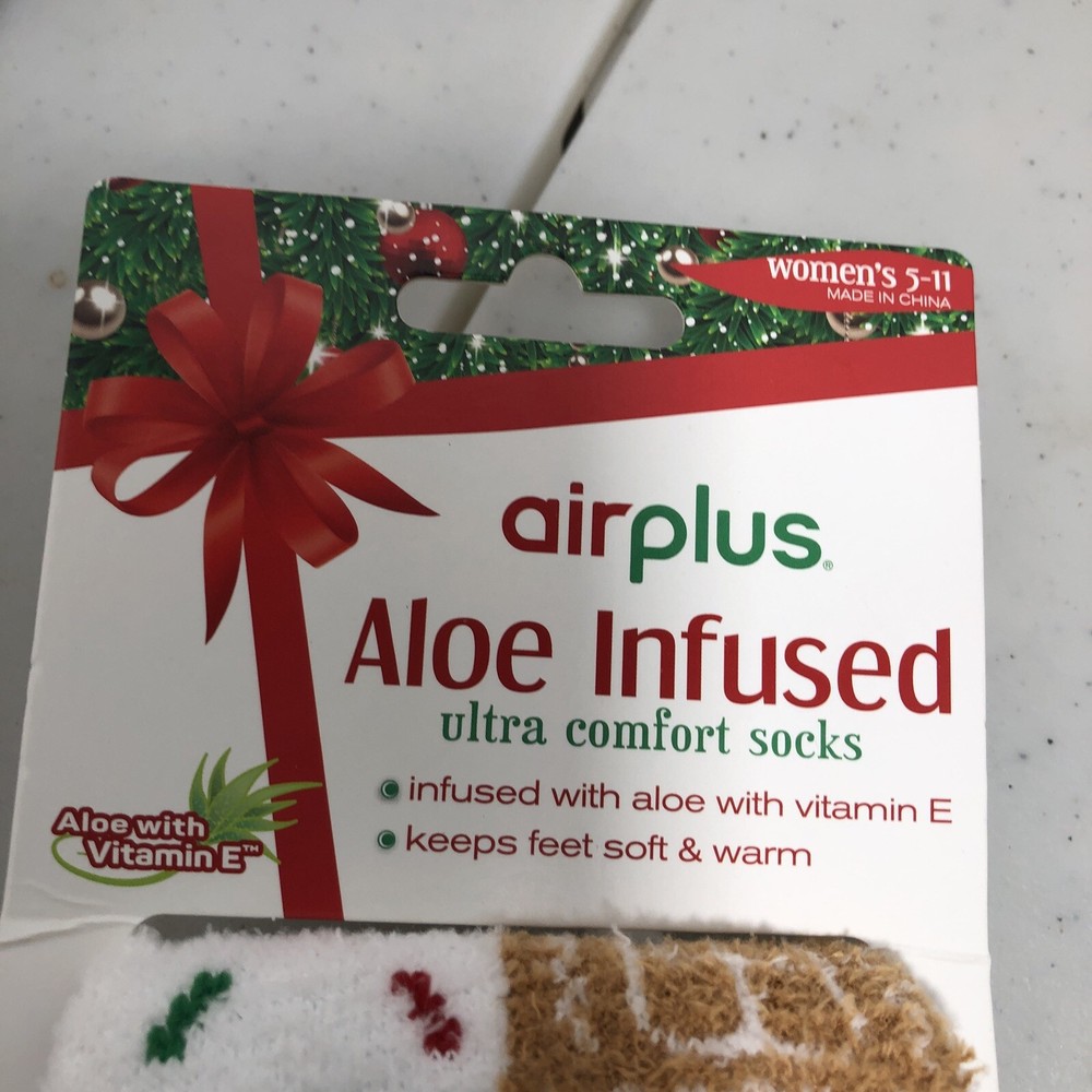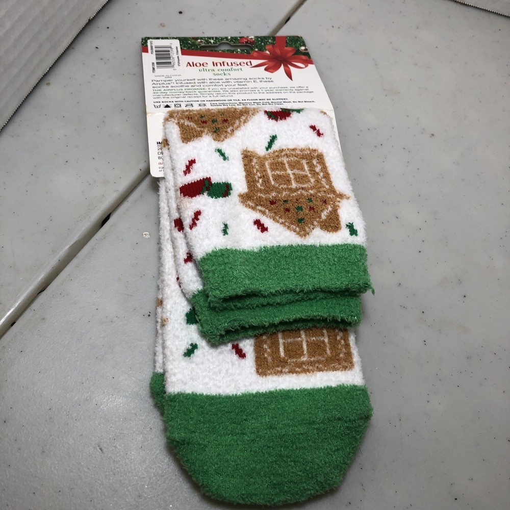 Airplus Fuzzy Gingerbread House Socks Aloe & Vitamin E Infused Ultra Comfort NEW...