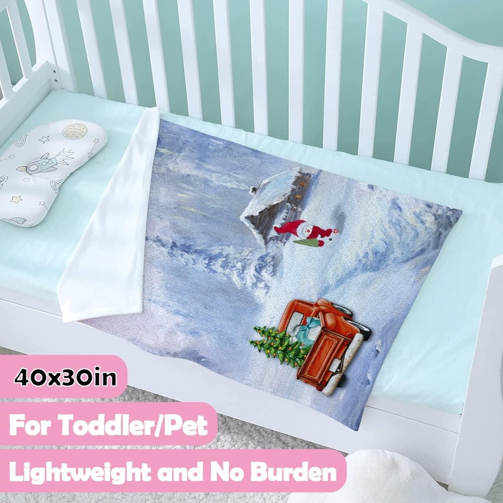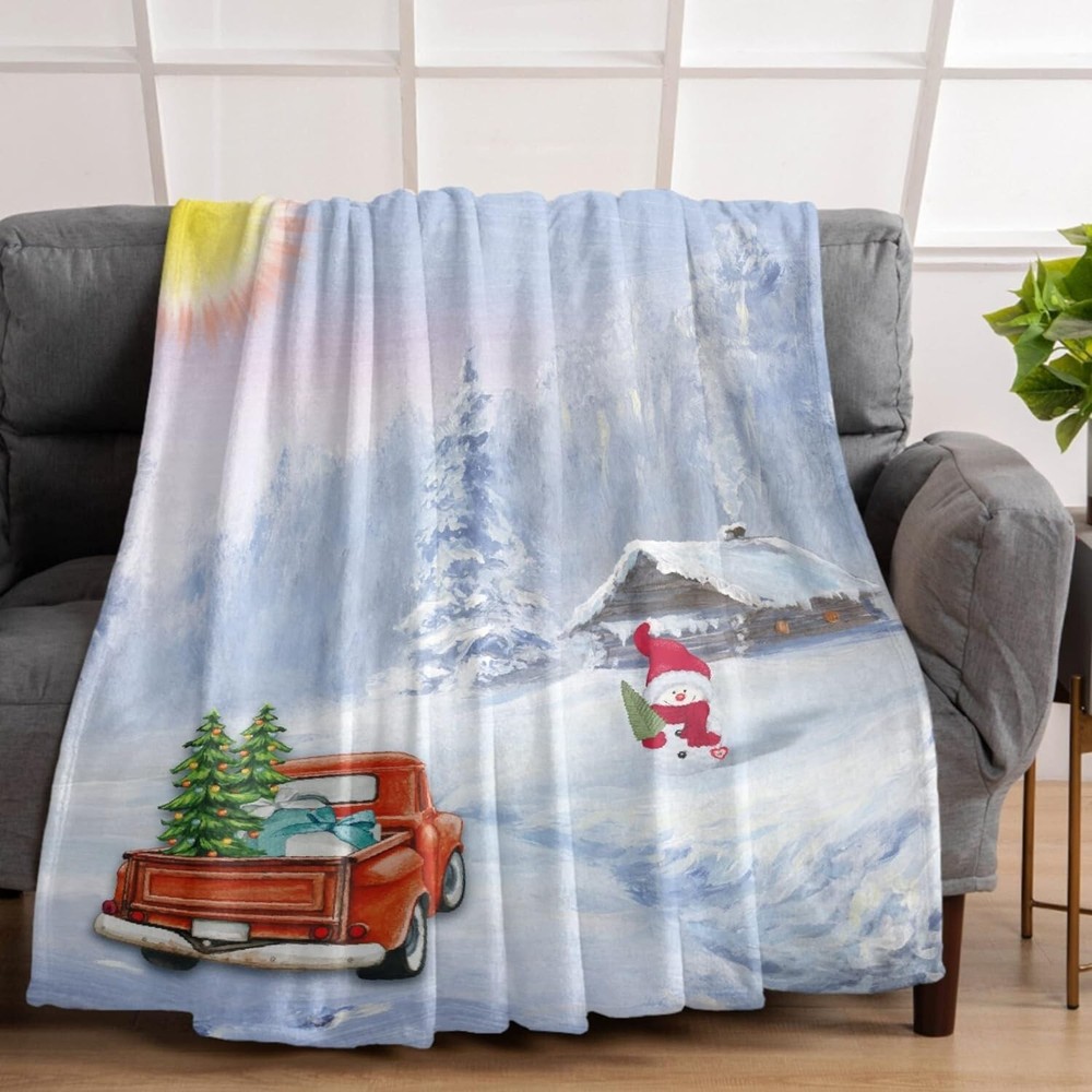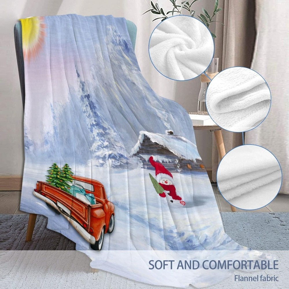 Akshobhya Snowman and Vintage Red Truck Christmas Blanket Soft Cozy Lightweight Flannel Throw Bedding Gift for Women Men Kid for Thanksgiving 30"x40" for 1-5 Toddler/Small Pet