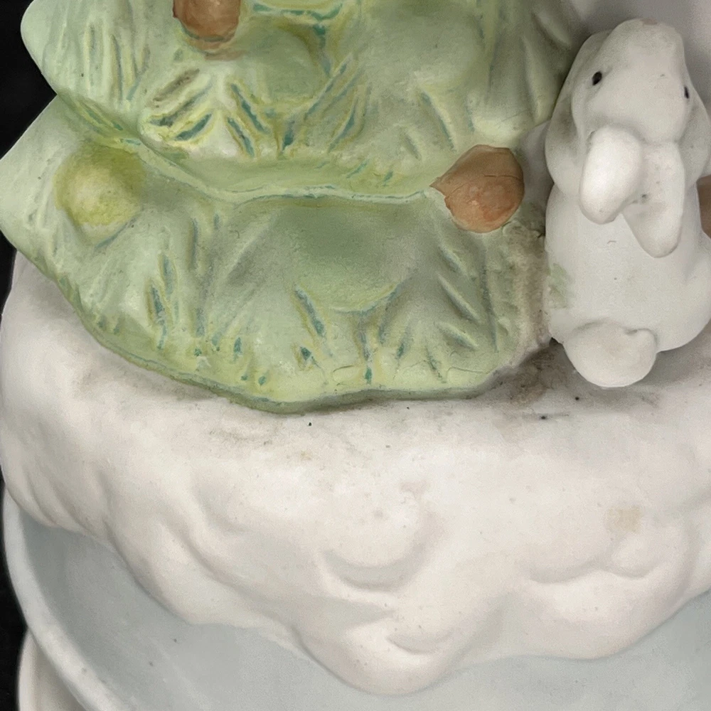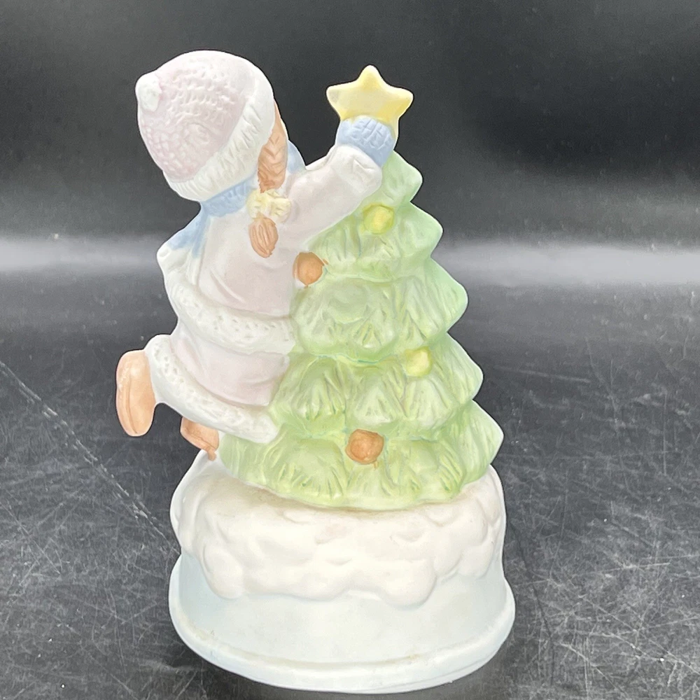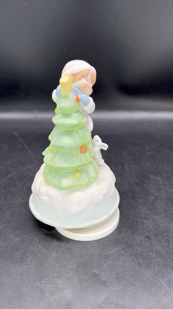 This vintage musical figurine from Albert Price Productions depicts a girl hugging a tree and plays the popular tune "Jingle Bells." The figurine is made of porcelain, has a multicolor finish, and weighs 1 lb. It is a great addition to any holiday or seasonal collection, especially for those who appreciate traditional style. The figurine is in its original, unboxed state and has a wind-up mechanism that makes it rotate while playing the music. It was manufactured in the late 20th century (1980-1989) in Taiwan and is not handmade. The item is perfect for indoor decoration and is an ideal gift for adults who love collecting figurines as a hobby.