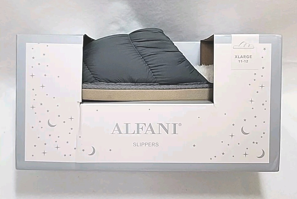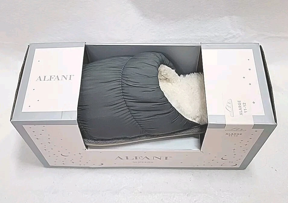 Alfani Puffer Slippers Quilted Cozy Faux Fur Gray Womens Slide XL 11 - 12 NEW Brand new in box, originally retailed for $34.99 4*7/CL 1.12 12.8.8...