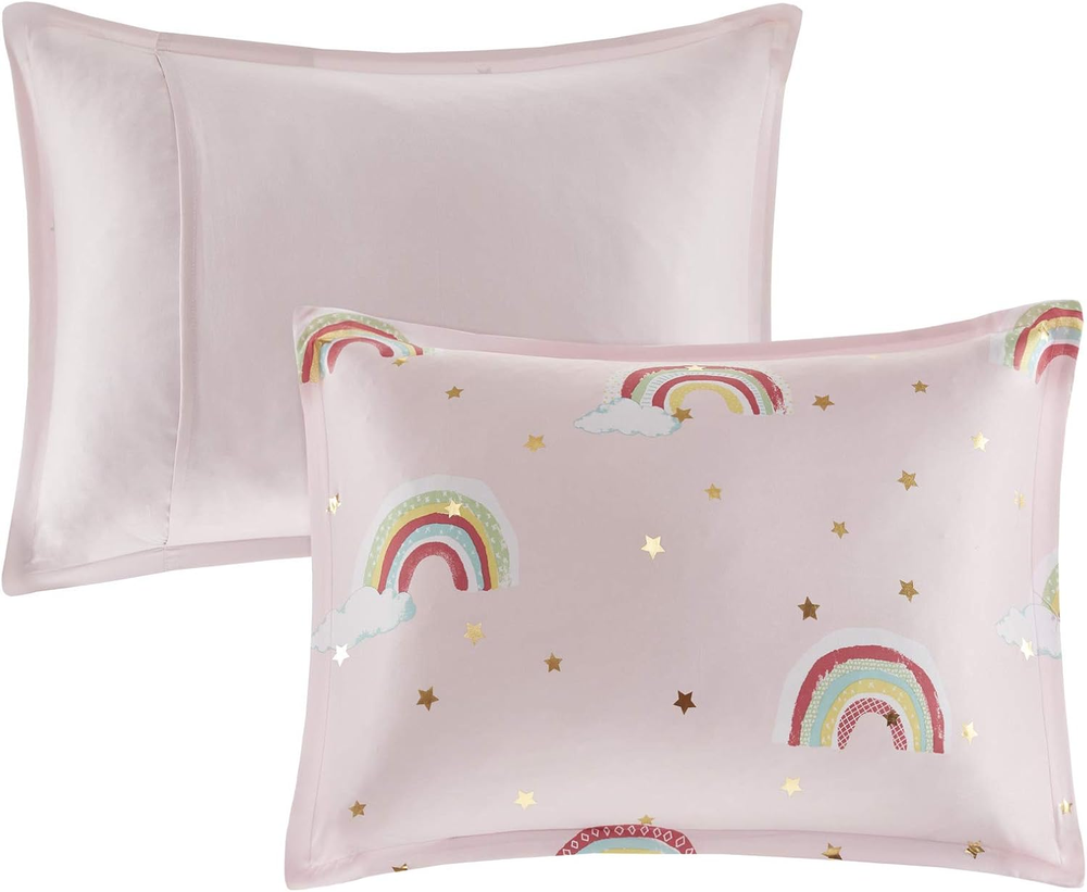 Menu Other Items Feedbacks About Us Contact Us Add To Favorites Alicia Cozy Bed in a Bag Comforter with Complete Sheet Set Fun and Playful Print, Children Cover Girls Room Décor, Twin, Pink 6 Piece 100% Microfiber STYLE - Modern fun, adorable, and cozy comforter set to update your kids bedroom decor with a whimsical charm décor or a playful design. Featuring colorful rainbow motif on a pink base color highlighted with sparkling metallic print stars decoration. Matching sham and a complete sheet set mirror the design and complete the fun on this adorable styling bedding set, while the solid pink color reverse balances the look. The decorative pillow features sophisticated embroidery of novelty unicorn design in colorful rainbow color hues matching the complete sheet set MATERIAL - Feel the gentle brushed microfiber comforter set which offers ultra soft material to give you comfort and warmth. The comforter features sparkling metallic stars print filling up The cover and highlighting The adorable rainbow design on beautiful pink base color. The brushed microfiber complete sheet set will complete this bedding arangement. This ultra soft bedding set will make you feel extra cozy giving you a better quality rest every night. OEKO-TEX labeled textile certified as safe on skin ALL SEASON - Our all season comforter sets offers a soft fabric reverse. Mi Zone Kids bedding collection aims to offer you a better quality sleeping experience. With the right amount of hypoallergenic down alternative filling, our cozy bedspread will give you the right amount of warmth and comfort for year round use WHAT'S INSIDE? - Twin Comforter: 66"W x 86"L (1), Matching Standard Sham: 20"W x 26"L + 1"D (1), Toss Pillow: 12"W x 16"L + 0. 25"D (1), Flat Sheet: 66"W x 96"L (1), Fitted Sheet: 39"W x 75"L + 12"D (1), Standard Pillowcase: 20"W x 30"L (1) CARE: Machine wash cold on gentle cycle, tumble dry on low heat, and do not bleach to keep the color vibrant. Pillows: Spot Clean. Commercial size washer is recommended The Mi Zone Kids Alicia comforter features an adorable rainbow and gold metallic star print for a cute and playful look. The comforter and shams (1 in Twin) bring a whimsical charm to your kid's bedroom and a complete sheet set with a fun unicorn print coordinates beautifully with the comforter set, while an oblong decorative pillow provides a fun finishing touch. The polyester comforter and decorative pillow are OEKO-TEX certified and hygienically treated to naturally stay fresh for longer periods providing you with peace of mind. Always clean and wash this product thoroughly before and after each use. Machine washable for easy care, this comforter and sheet set brightens up your kid's bedroom with its delightful allure. Item Specification Item model number MZK10-170 Style Fun and Playful Print, Children Cover Girls Room Décor Assembly required No Color Pink Comforter Pattern Geometric Fabric Type 100% Microfiber Material Polyester Country of Origin China Item dimensions L x W x H 86 x 66 x 1 inches Item Weight 6.34 pounds Batteries required No Theme Fantasy Size Twin Seasons All Number of Pieces 6 Product Dimensions 86 x 66 x 1 inches Product Care Instructions Machine Wash Included Components Pillow Sham, Comforter, Pillow Dimensions Shipping Returns Additional Info Product Dimensions: 66.0 inches x 86.0 inches x 1.0 inches. Weight: 6.34 lb Fast shipping is very important for us. Our standard shipping service is FREE. Your order will be shipped within 1-3 business days upon full payment received. Most items are delivered within 3-5 business days, however, please allow 3-10 business days. We are shipping only to USA. We only ship to the confirmed Paypal address. We reserve the right to cancel any order for any reason at any time. We are not responsible for undeliverable addresses. We offer a 30 day return policy from checkout winning date. Your satisfaction is guaranteed! If for any reason you are unhappy with your item, just return it within 30 days for a full refund, minus shipping cost. Please contact us prior to initiating a return so that we can issue you a refund authorization. Items defective upon receipt must be packaged in their retail packaging as if new and returned with a detailed description of the problem. Return shipping fees are not refundable. We reserve the right to decline any returns if the above guidelines are not followed. All of our items, unless otherwise stated, will only run on 120 volts. Please check to make sure your country complies with these specifications. If you have a problem or question regarding your transaction please contact us before leaving any type of feedback. We will work with you to resolve any problem you may have.