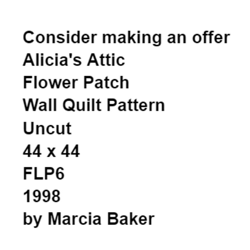<![CDATA[<div>Alicia's Attic Flower Patch Wall Quilt Pattern Uncut Complete FLP6 1998 by Marcia Baker Size: 44" x 44" New Condition (see pics for details) Features: • Flaws: none • We are happy to answer your questions • Shop similar items in our store & bundle • Consider making an offer • Super Fast Shipping Actual color may vary slightly based on screen colors lighting & camera We strive to stop climate change & protect our planet Shipping materials are reused & recycled Props used in photos aren't included Examine carefully before buying Gift Mature Home Decor Grannycore Farmcore Farmhouse Country Craft Sewing Hobby Grandma