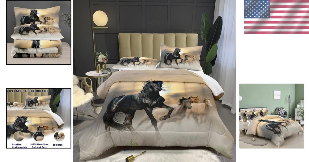All-Season 3D Horse Print Kids Bedding Set - Lightweight & Breathable Microfiber ‹ › ‹ › ‹ › ‹ › ‹ › ‹ › ‹ › ‹ › ‹ › All-Season 3D Horse Print Kids Bedding Set - Lightweight & Breathable Microfiber Product Overview: Transform your child's bedroom into a whimsical haven with our All-Season 3D Horse Print Kids Bedding Set. Beautifully crafted from soft, breathable microfiber, this bedding set promises comfort and style -round. Specifications: Material: Microfiber Polyester (Soft, Natural, Breathable, Machine Washable) Sizes Available: Twin Size: 68" x 86", Pillow Case 20" x 30" Full Size: 79" x 91", 2 Pillow Cases 20" x 30" Queen Size: 90" x 90", 2 Pillow Cases 20" x 30" King Size: 90" x 104", 2 Pillow Cases 20" x 35" Features: Super soft and lightweight for ultimate comfort Skin-friendly fabric—perfect for sensitive skin All-season usability—cool in summer, warm and cozy in winter Ideal for kids, making it a perfect gift for birthdays or Christmas Care Instructions: Machine washable in cold water on a gentle cycle Tumble dry on low heat—do not bleach or iron Customer Support: We pride ourselves on great customer service. Should you have any questions regarding our products, please feel free to contact us directly. Your satisfaction is our priority, and we are dedicated to providing you with exceptional service 24/7. Why Choose Our Bedding Set? Infuse your child's space with creativity and comfort. Our All-Season 3D Horse Print Kids Bedding Set not only enhances the aesthetic of any bedroom but ensures a restful night’s sleep no matter the season. This bedding set is the perfect blend of comfort, style, and practicality, making it an excellent addition to any home. Invite the spirit of adventure into your child’s sleep space. Order your All-Season 3D Horse Print Kids Bedding Set today and create a cozy sanctuary they will love! Shipping Free & Fast Shipping - We offer free shipping to most of the USA with a normal delivery time of 3-7 days. However, due to the current situation, additional delivery time (up to 3 weeks) may be required for some items. Alternative Carriers - We may use alternative carriers (e.g. USPS, FedEx, UPS, etc.) to ensure your package arrives safely and on time. Due to the use of multiple carriers, we are unable to provide a tracking number automatically. Handling Time - Orders are processed and shipped within 1-2 business days of receiving cleared payment. Shipping Restrictions - Shipping to Alaska, Hawaii, Puerto Rico, Guam, and other US territories may incur shipping charges or delivery restrictions. Please contact us before ordering, or your order can be refunded/cancelled. State Restrictions - There may be restrictions based on your state of purchase. For example, certain items may not be shipped to California due to state regulations. Contact for Tracking Updates - If you require tracking updates or have any concerns about the delivery of your order, please feel free to contact us, and we will be happy to assist you. Return 30-Day Hassle-Free Returns - We want you to be completely satisfied with your purchase. If you are not, you can return the item within 30 days of receiving it for a full refund or exchange. Easy Return Process - To start a return, simply contact us and we will provide you with a prepaid return shipping label and detailed instructions. Restocking Fee - There are no restocking fees for returns. However, the buyer is responsible for return shipping costs if the return is not due to a seller's error. Refund Processing Time - Refunds will be processed within 5 business days of receiving the returned item in its condition. Payment We accept all major credit cards, PayPal, and Apple Pay for your convenience. Your payment information is secure and encrypted to ensure a safe and seamless transaction. Please complete your payment within 3 days of purchase to avoid any delays in shipping. Feedback Your feedback is extremely important to us. We strive to provide the best products and customer service possible. If you are satisfied with your purchase, please take a moment to leave us a positive review. If you have any concerns or issues with your order, please contact us before leaving negative feedback. We are committed to resolving any problems and ensuring your satisfaction. Contact Us If you have any questions or concerns, please feel free to out to our customer support team. You can contact us through the eBay messaging system. We are available Monday to Friday, 9:00 am to 5:00 pm EST, and we will do our best to respond to your inquiry within 24 hours. Buy it now and enjoy a pleasant shopping experience! Set Includes: Comforter,Pillowcase Material: Microfiber,Polyester Features: Breathable,Hypoallergenic,Lightweight,Machine Washable,Soft,Comfortable,Suitable for All Seasons Theme: Seasonal Care Instructions: Do Not Bleach,Machine Wash,Machine Wash Cold,Tumble Dry on Low Heat Department: Kids Room: Bedroom Size: Full Type: Comforter Set Color: Horse 4001 Fill Material: Polyester Pattern: Horses Insulation: All Seasons Number of Items in Set: 3 Style: Modern Season: Winter Closure Type: No Closure Thread Count: 200 or Less GSM (Grams per Square Meter): Below 150