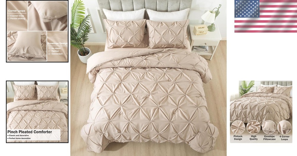 All-Season California King Comforter Set - Soft & Elegant Pinch Pleat Design ‹ › ‹ › ‹ › ‹ › ‹ › ‹ › ‹ › ‹ › ‹ › All-Season California King Comforter Set - Soft & Elegant Pinch Pleat Design Elevate Your Bedroom with Luxurious Comfort Indulge in the ultimate sleeping experience with our exquisite All-Season California King Comforter Set, designed with an elegant pinch pleat style that adds a modern touch to your bedroom. Achieve both beauty and functionality with this comforter set, perfect for transforming your space into a lavish retreat. Features: Pintuck Style: A modern and fashionable design that beautifies your bed. Soft and Cozy Fabric: Crafted from high-quality microfiber, known for its incredible softness. Lightweight Fill: Filled with down alternative microfiber to ensure warm yet breathable comfort. Great Gift Idea: Comes with 1 comforter (104x96 inches) and 2 pillowcases (20x36 inches), perfect for memorable occasions. Handmade Excellence: Every pleat is meticulously crafted by hand for an exquisite finish. All-Season Suitability: Ideal for -round use, blending warmth and lightness effortlessly. Benefits: Transforms your bedroom into an elegant haven. Provides a cozy and warm sleeping environment. Makes an ideal gift for loved ones on special occasions. Ensures durability and quality for better sleep. Versatile for all seasons, adapting to your comfort needs. Why Choose Our California King Comforter Set? Experience the perfect blend of comfort and sophistication with this All-Season California King Comforter Set. It's more than just bedding; it's a transformative experience for your home. The handmade pinch pleat design makes an eye-catching statement, while the soft microfiber ensures your nights are restful and rejuvenating. Embrace the warmth and elegance this comforter set brings to your life. Don’t settle for ordinary—elevate your sanctuary with our comforter set. Order now and indulge in the luxury you deserve! Shipping Free & Fast Shipping - We offer free shipping to most of the USA with a normal delivery time of 3-7 days. However, due to the current situation, additional delivery time (up to 3 weeks) may be required for some items. Alternative Carriers - We may use alternative carriers (e.g. USPS, FedEx, UPS, etc.) to ensure your package arrives safely and on time. Due to the use of multiple carriers, we are unable to provide a tracking number automatically. Handling Time - Orders are processed and shipped within 1-2 business days of receiving cleared payment. Shipping Restrictions - Shipping to Alaska, Hawaii, Puerto Rico, Guam, and other US territories may incur shipping charges or delivery restrictions. Please contact us before ordering, or your order can be refunded/cancelled. State Restrictions - There may be restrictions based on your state of purchase. For example, certain items may not be shipped to California due to state regulations. Contact for Tracking Updates - If you require tracking updates or have any concerns about the delivery of your order, please feel free to contact us, and we will be happy to assist you. Return 30-Day Hassle-Free Returns - We want you to be completely satisfied with your purchase. If you are not, you can return the item within 30 days of receiving it for a full refund or exchange. Easy Return Process - To start a return, simply contact us and we will provide you with a prepaid return shipping label and detailed instructions. Restocking Fee - There are no restocking fees for returns. However, the buyer is responsible for return shipping costs if the return is not due to a seller's error. Refund Processing Time - Refunds will be processed within 5 business days of receiving the returned item in its condition. Payment We accept all major credit cards, PayPal, and Apple Pay for your convenience. Your payment information is secure and encrypted to ensure a safe and seamless transaction. Please complete your payment within 3 days of purchase to avoid any delays in shipping. Feedback Your feedback is extremely important to us. We strive to provide the best products and customer service possible. If you are satisfied with your purchase, please take a moment to leave us a positive review. If you have any concerns or issues with your order, please contact us before leaving negative feedback. We are committed to resolving any problems and ensuring your satisfaction. Contact Us If you have any questions or concerns, please feel free to out to our customer support team. You can contact us through the eBay messaging system. We are available Monday to Friday, 9:00 am to 5:00 pm EST, and we will do our best to respond to your inquiry within 24 hours. Buy it now and enjoy a pleasant shopping experience! Set Includes: Comforter,Pillowcase,Pillow Sham Material: Microfiber,100% microfiber Features: Down Alternative,Soft,Cozy Theme: Seasonal Care Instructions: Hand Wash,Hand Wash Only Department: Unisex Baby & Toddler,Kids,Teens,Adults Room: Bedroom Size: California King Type: Comforter Set Color: Wheat Fill Material: Microfiber Pattern: Solid Insulation: All Seasons Number of Items in Set: 3 Style: Contemporary Season: All Closure Type: No Closure Thread Count: 200 or Less GSM (Grams per Square Meter): Below 150