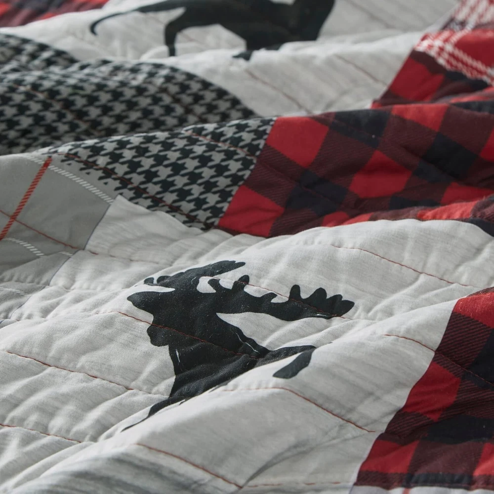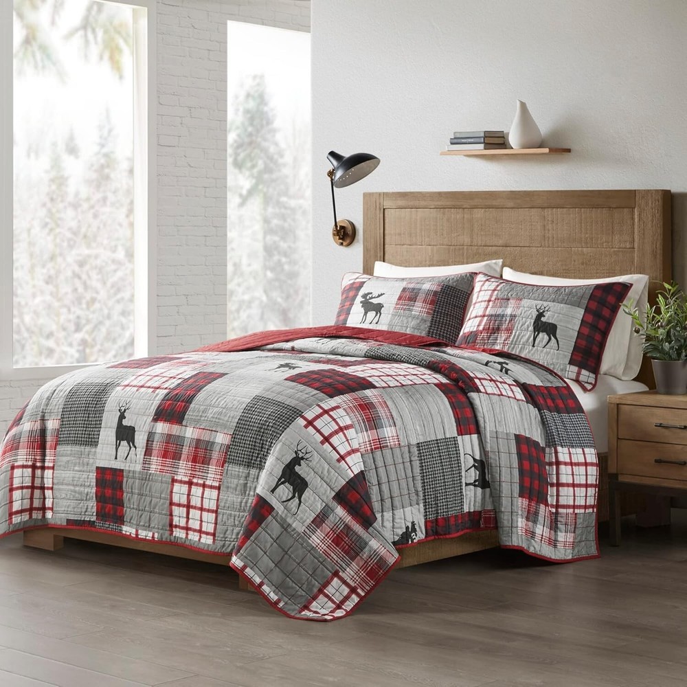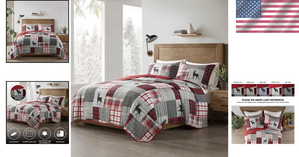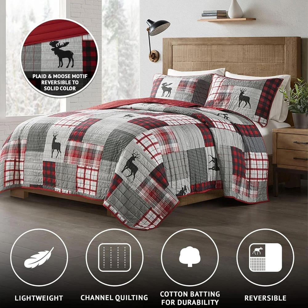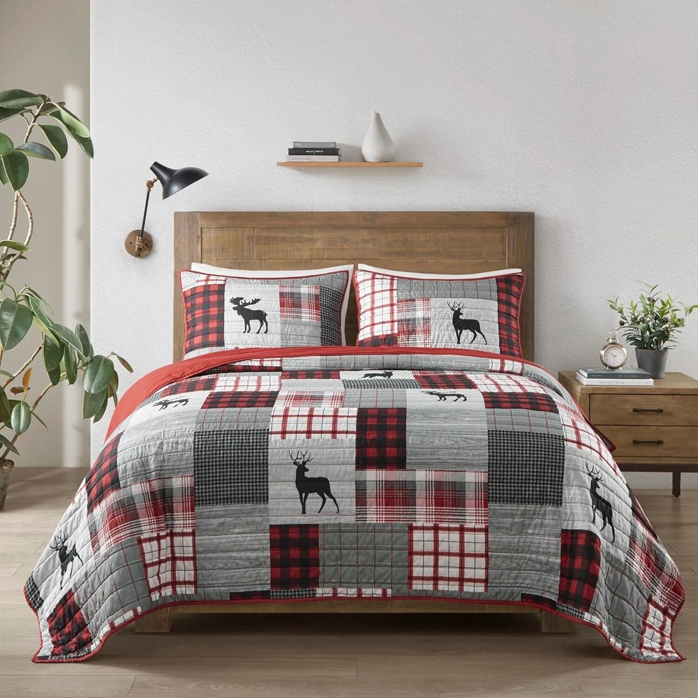 This quilt set is absolutely stunning! The rich red color and moose design add such a cozy, rustic charm to my bedroom. The microfiber fabric is so soft and warm, perfect for year-round comfort. I love the reversible feature—it’s like having two quilts in one! The oversized fit and matching shams make my bed look luxurious. Washes well, stays vibrant, and feels incredibly durable. Totally worth it for the price—highly recommend!