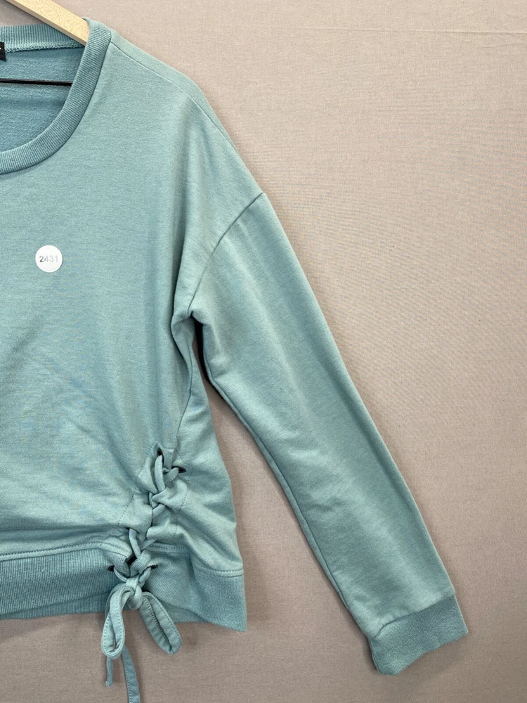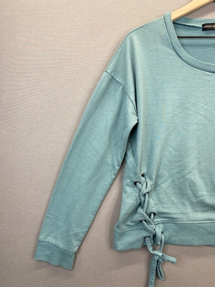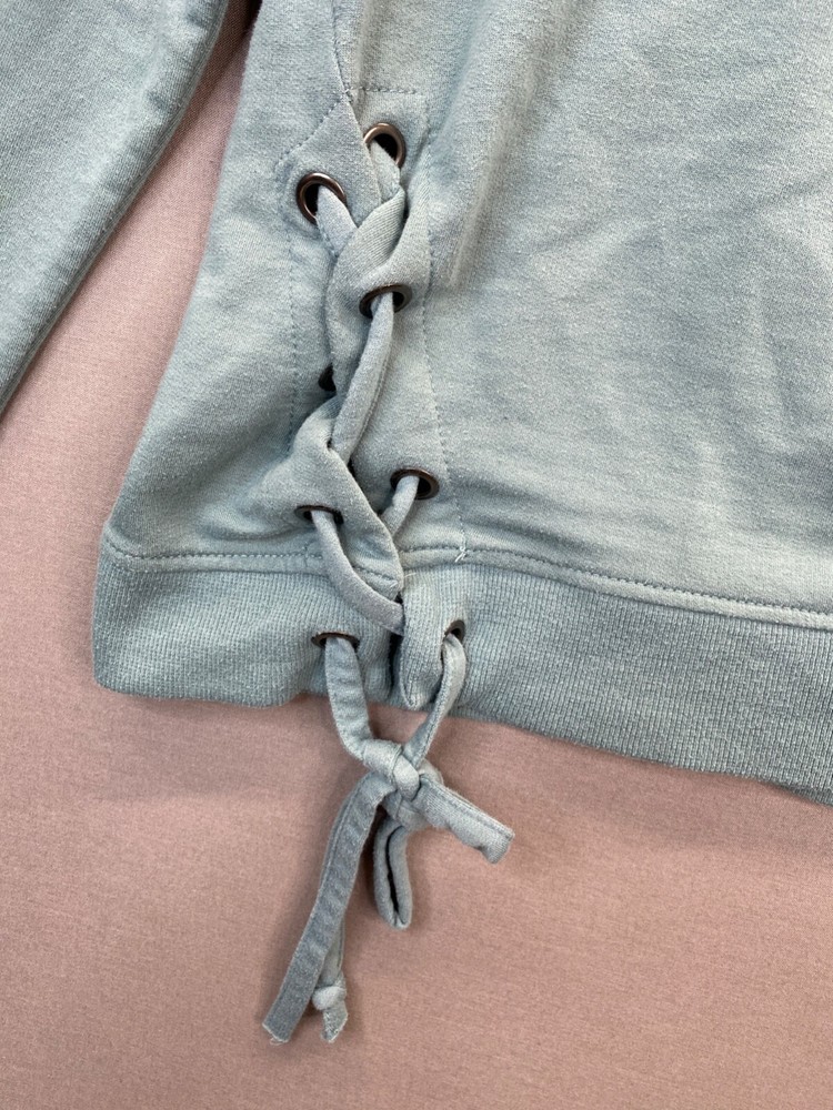 Almost Famous Womens Blue Sweatshirt Lace Up Scoop Neck Pullover No Size "