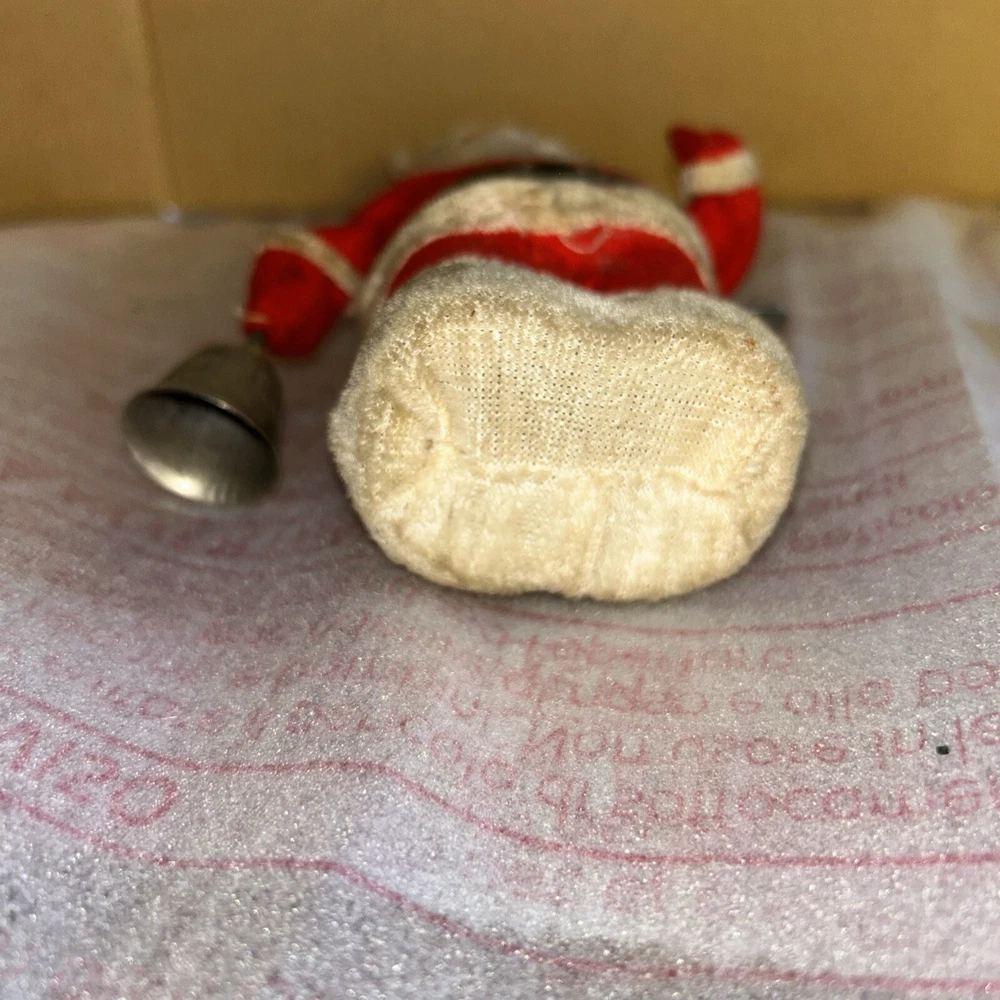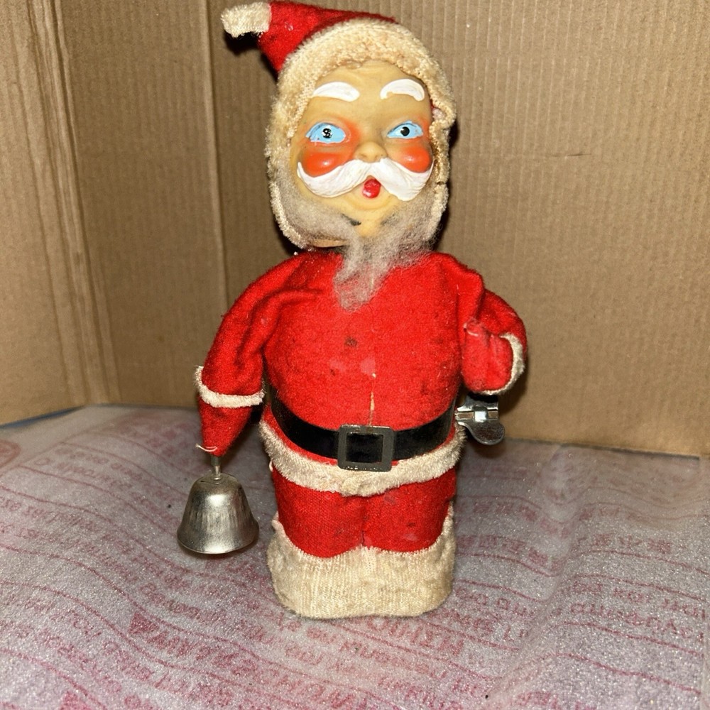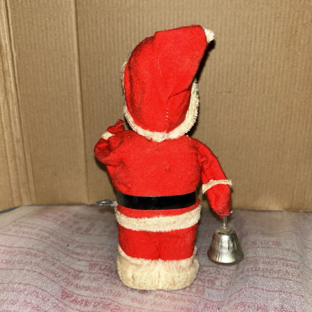 Alps Vintage 1950s Mechanical Wind-Up Santa Claus is a classic toy from the christmas character family. This wind-up toy was manufactured in Japan in the 1950s and is a vintage piece. It features Santa Claus in his traditional outfit with a bell and is a great addition to any collection. Perfect for Christmas enthusiasts and vintage toy collectors alike. This toy no longer works. The key does wind it up but it doesn’t unwind and operate. It is missing the bell clapper also. Need a good cleaning but in fair shape