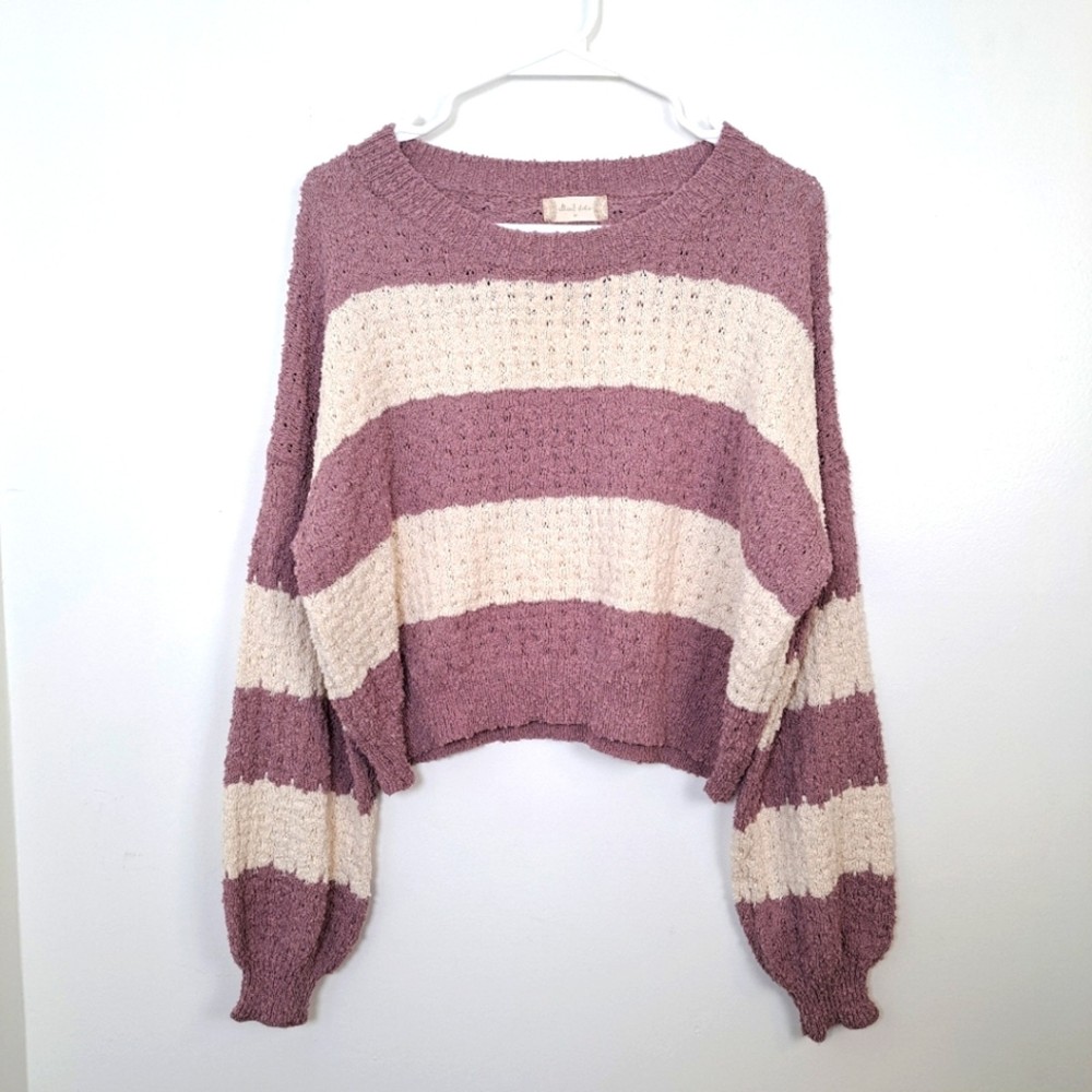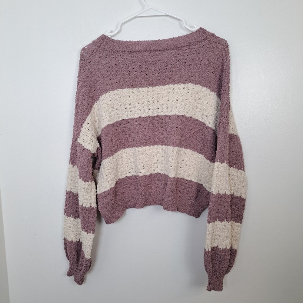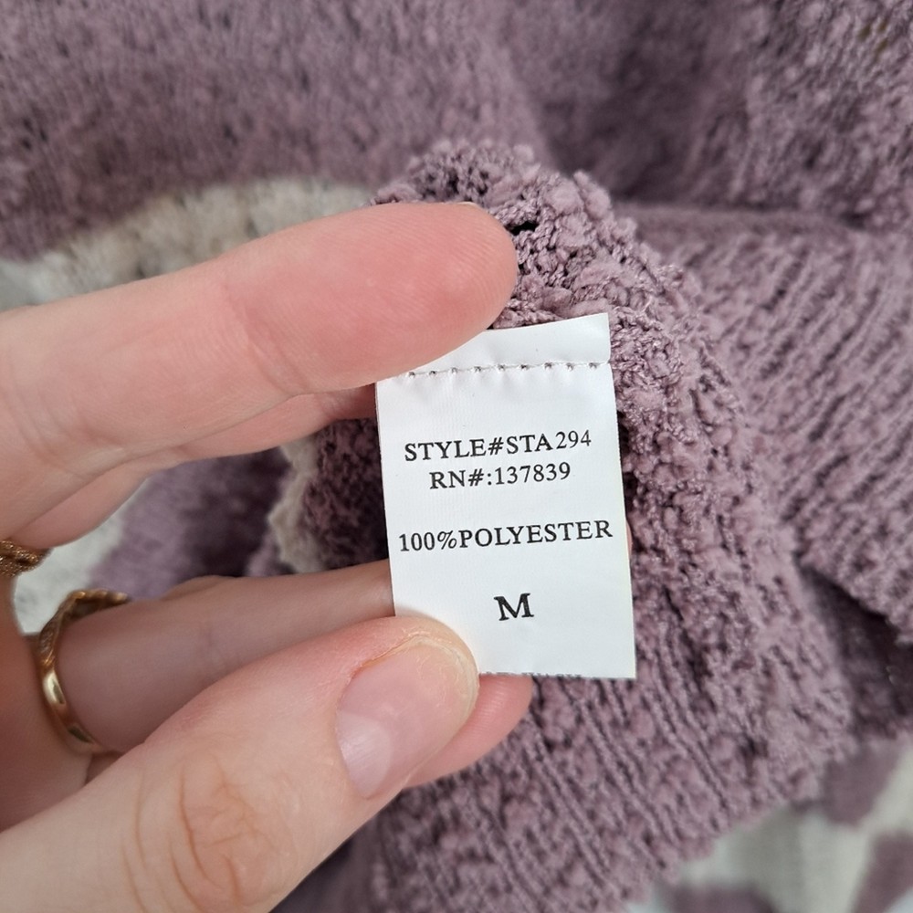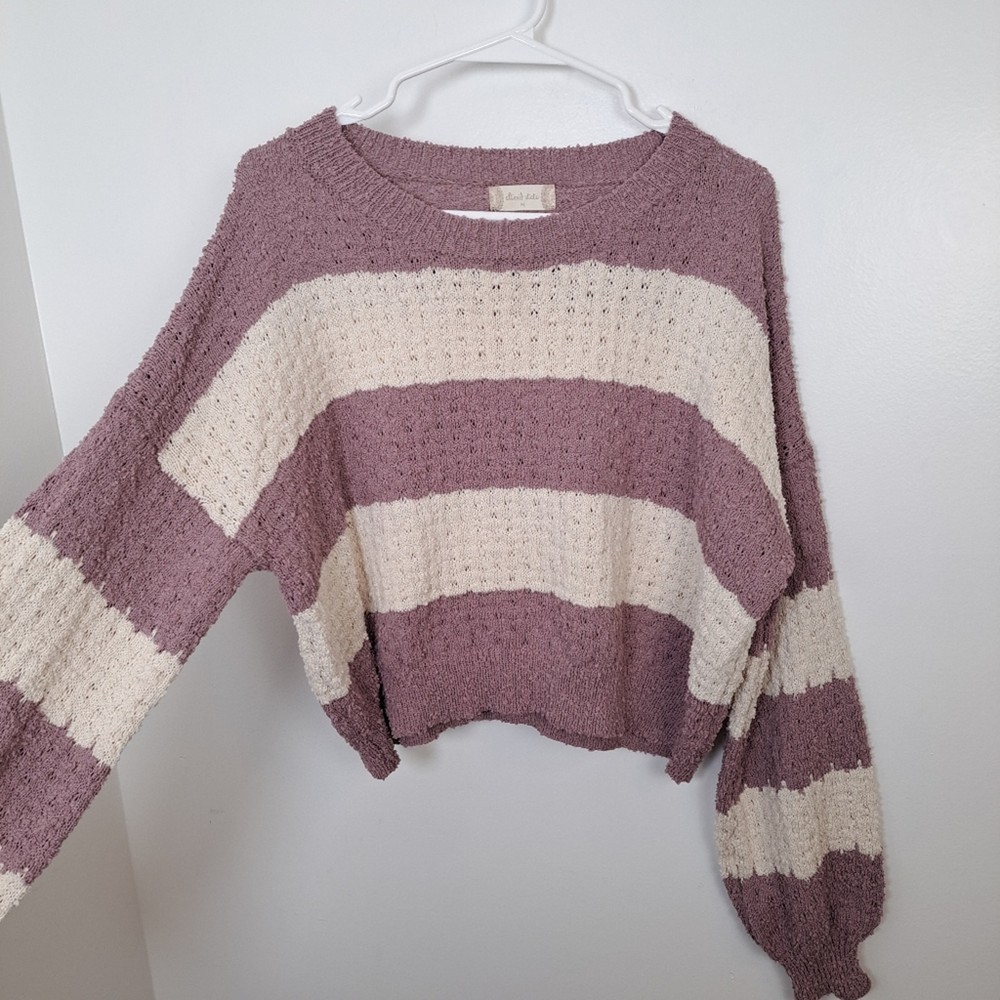 This cozy, textured sweater is an absolute dream—soft, warm, and perfect for everyday wear. The subtle purple and cream stripes add just the right touch of dainty charm. Great condition and surprisingly lightweight, making it ideal for layering in fall or winter. A closet staple that’s both stylish and comfortable!