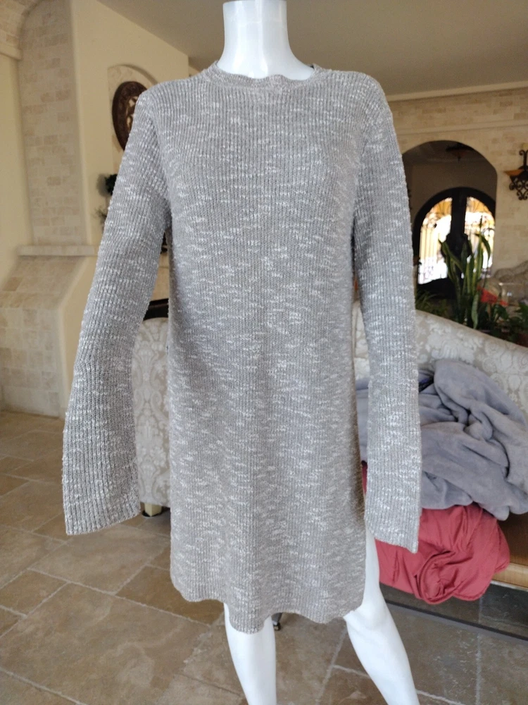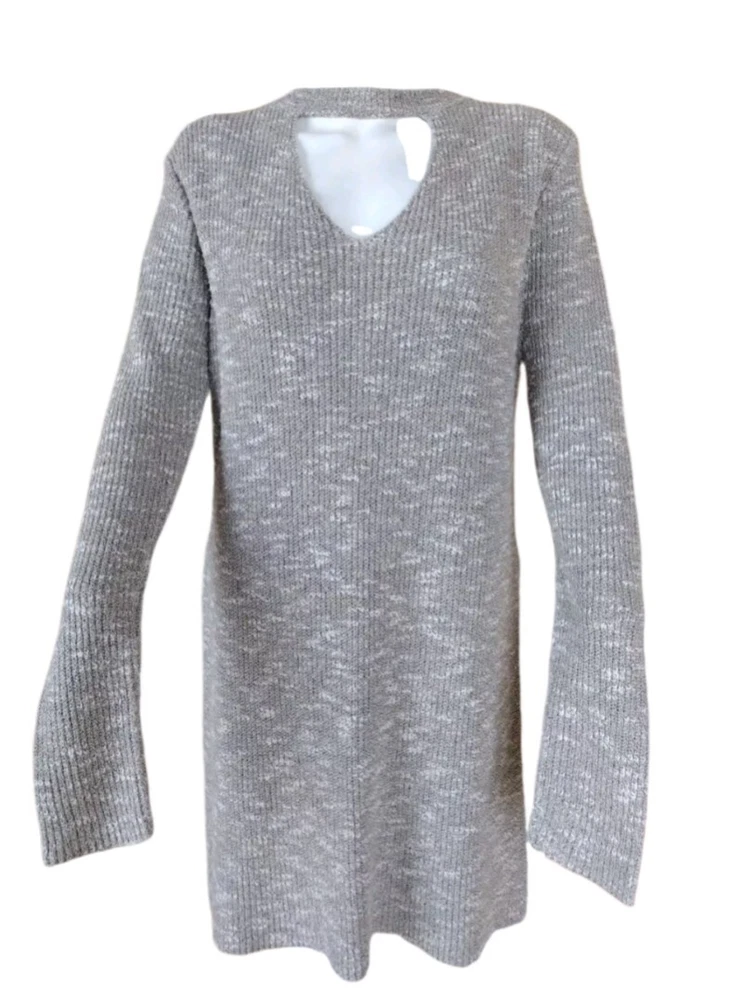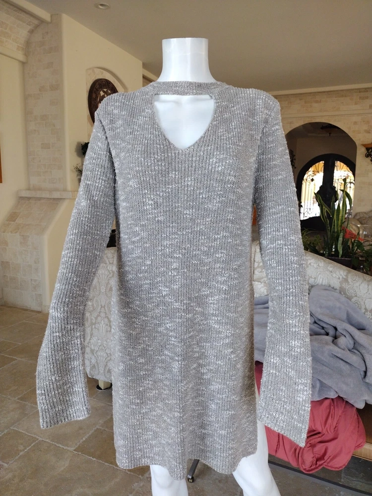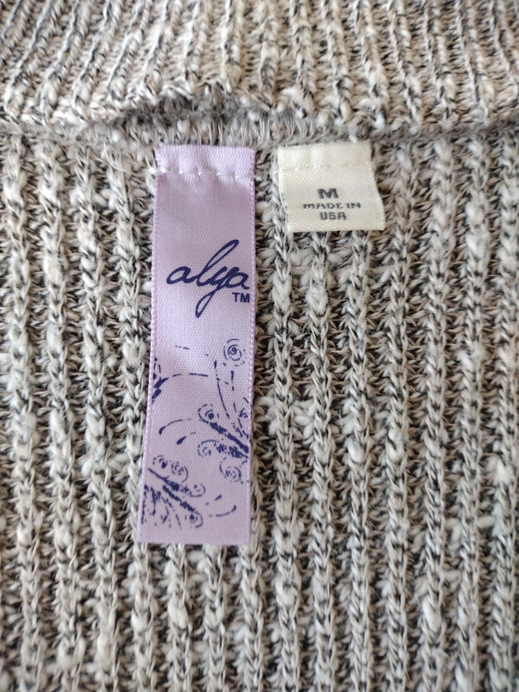 Elevate your outdoor, classic, and preppy style with this Alya Woman Medium Tunic Knit Sweater. The gray sweater features a solid pattern, V-neckline, raglan sleeves, and cable character. It is made of lightweight and breathable cotton knit fabric, making it perfect for any occasion. The sweater also comes with slides for added comfort and warmth. This pullover sweater is perfect for women who love to stay stylish and comfortable. It is a regular size and has no vintage features. The sweater is designed by Alya and is ideal for any fashion-conscious woman.