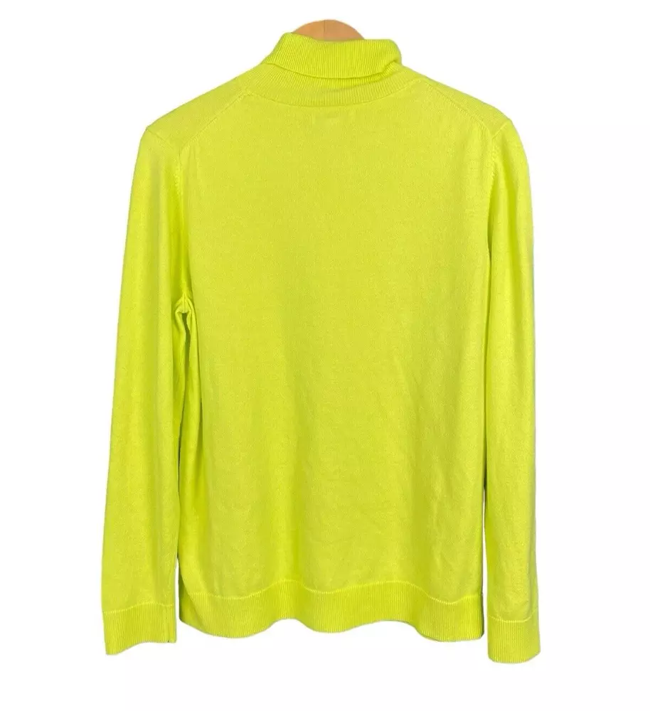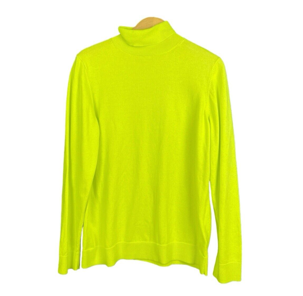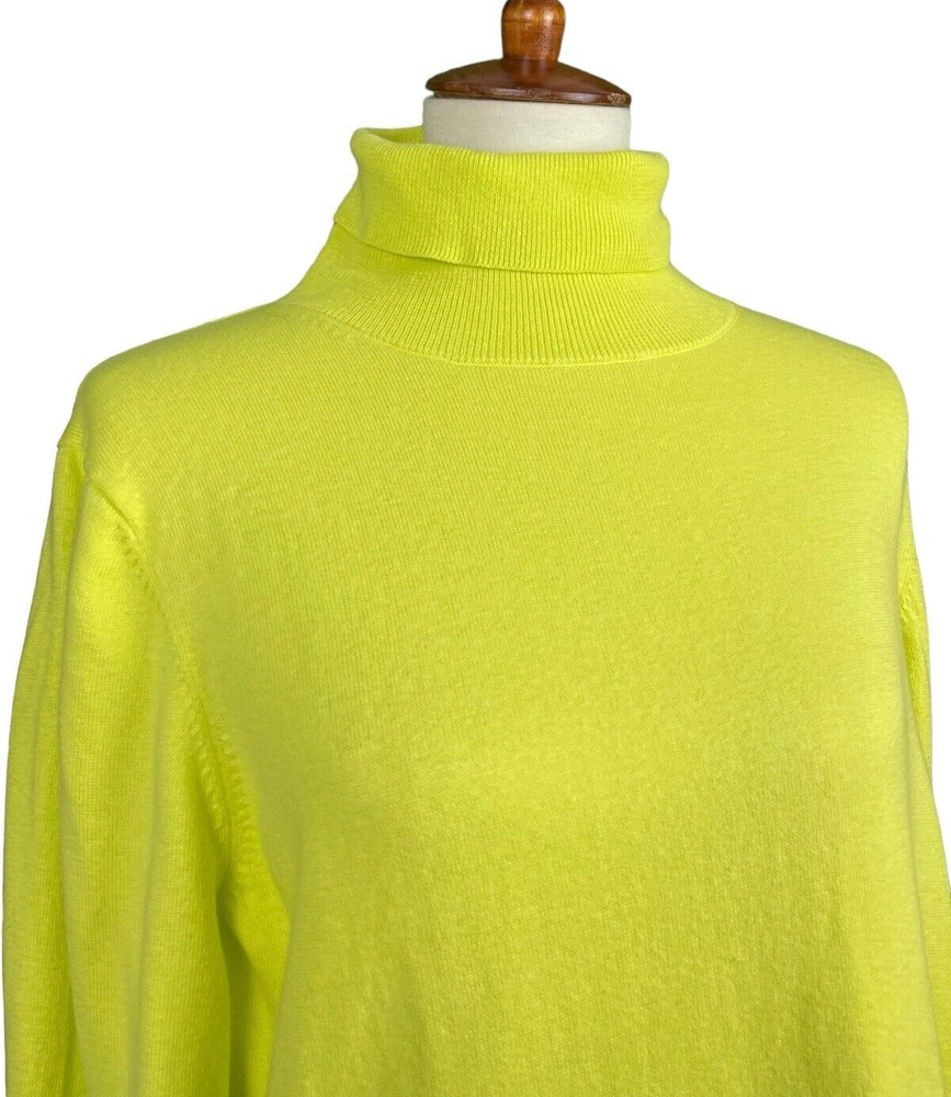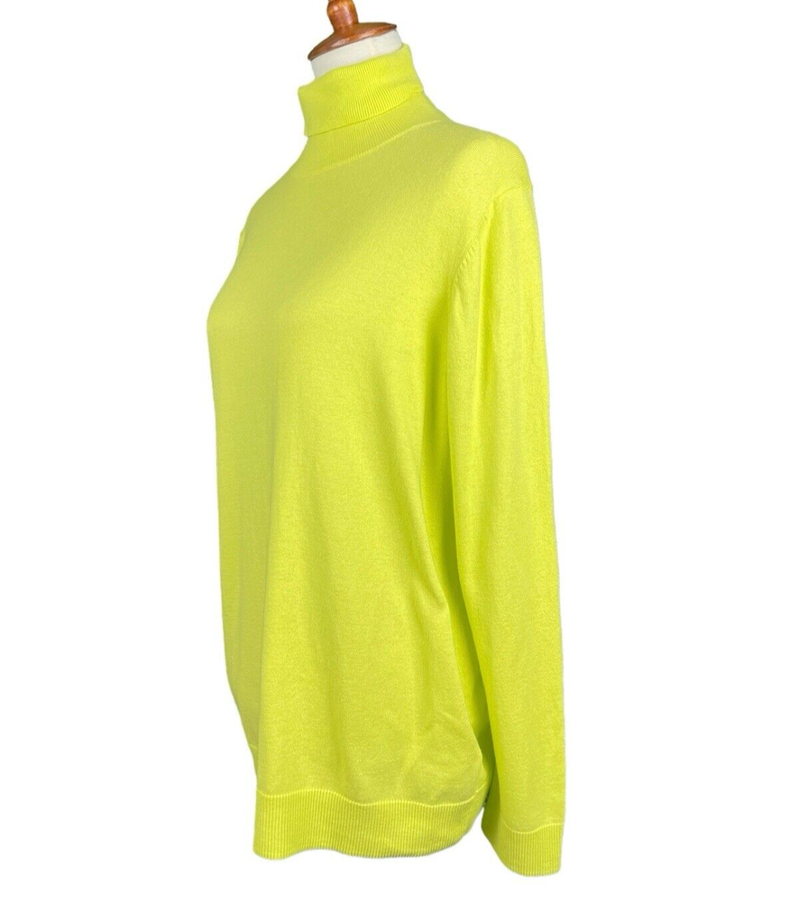 Amazon Essentials Sweater Women XL Bright Yellow Turtleneck Soft Cozy Comfort SIZE: XL MEASUREMENTS: length: 27" bust: 42" waist: 46" sleeve: 27" MATERIAL: 55% cotton, 25% modal, 20% polyester CONDITION>> Rest assure that ALL of our items are washed or dry cleaned and coming from a pet free, smoke free environment! Keep in mind that with vintage and secondhand items, there will be normal wear, but we will do our absolute best to always list any flaws with all of our items. ADD TO CART to purchase multiple items and get combined shipping. Message me if shipping is not combined and I can refund shipping overage before order is shipped out.