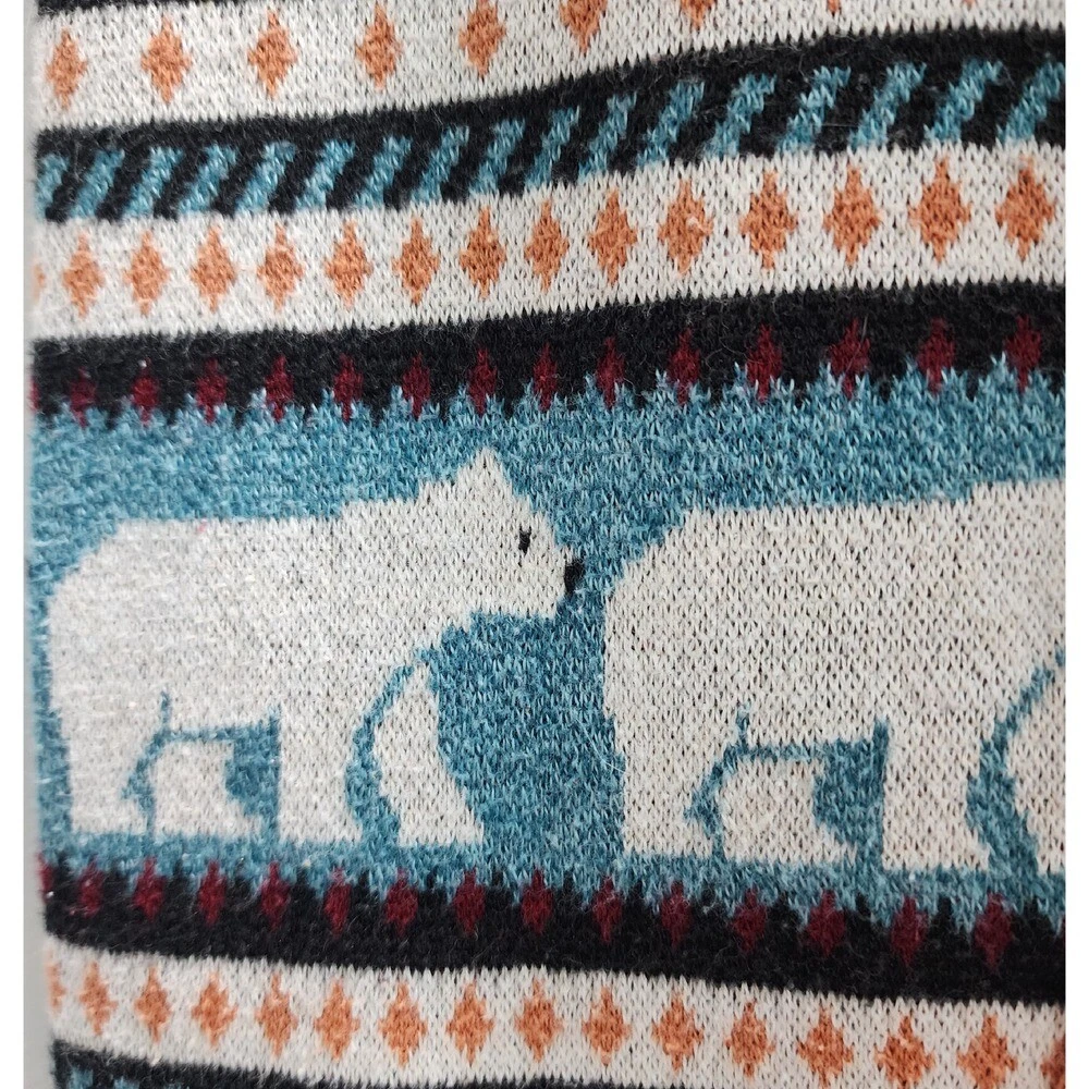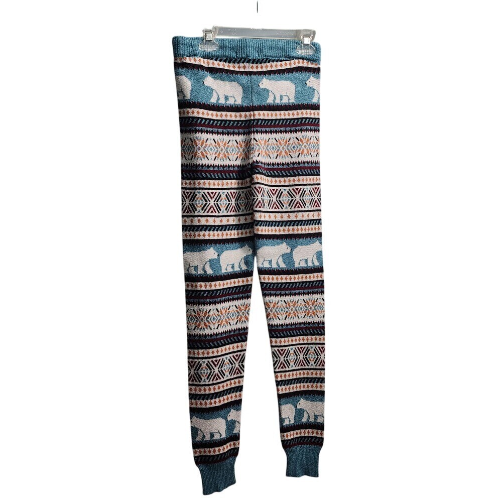 Cozy knit lounge pants featuring a charming bear and fair isle pattern. These pants offer a comfortable and stylish way to relax at home or run errands. The intricate knit design adds a touch of warmth and texture, while the relaxed fit ensures all-day comfort. Waist 24 Inseam 28 Style: Sweatpants Color: Blue Department: Women Type: Pants Material: Cotton, Polyester, Acrylic, Viscose Leg Style: Straight Fabric Type: Knit Features: Comfort, Elastic Waist, Drawstring, Cozy, Lightweight Pattern: Fair Isle Closure: Drawstring, Pull On Occasion: Casual All pre-owned clothing has been washed to manufacturer standards Keywords: American Eagle, lounge pants, knit pants, bear print, fair isle, cozy pants, comfortable pants, womens pants, xs pants, casual pants, pajama pants, winter pants, holiday pants, relaxed fit, drawstring pants